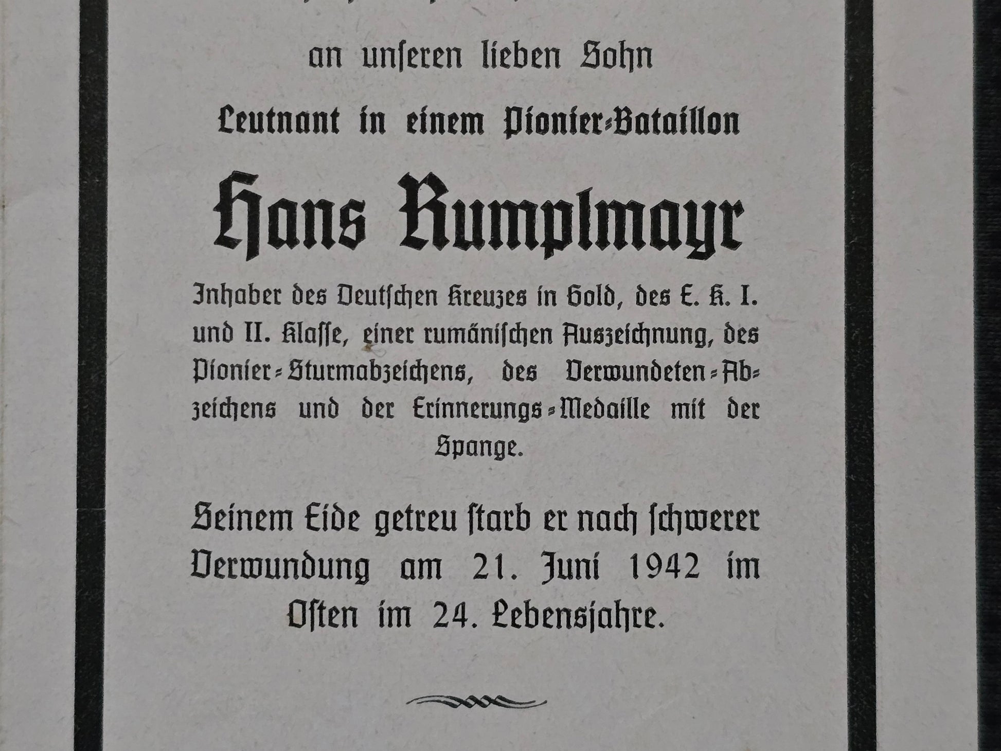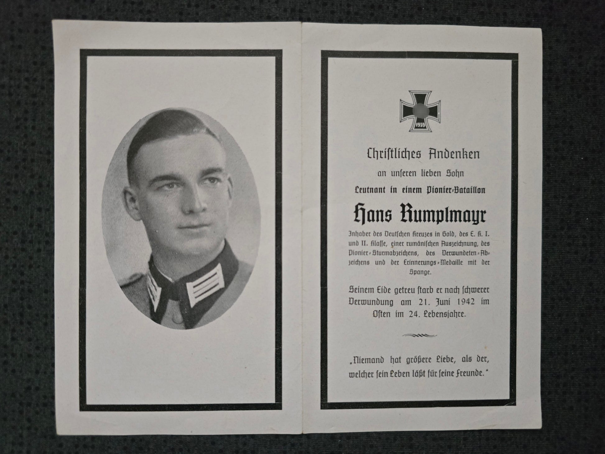Sterbebild Leutnant Grunau 1. Komp. Pion. Btl. 70 DKiG EK I&II Erinnerungsmedaille mit Spange Sewastopol Ukraine