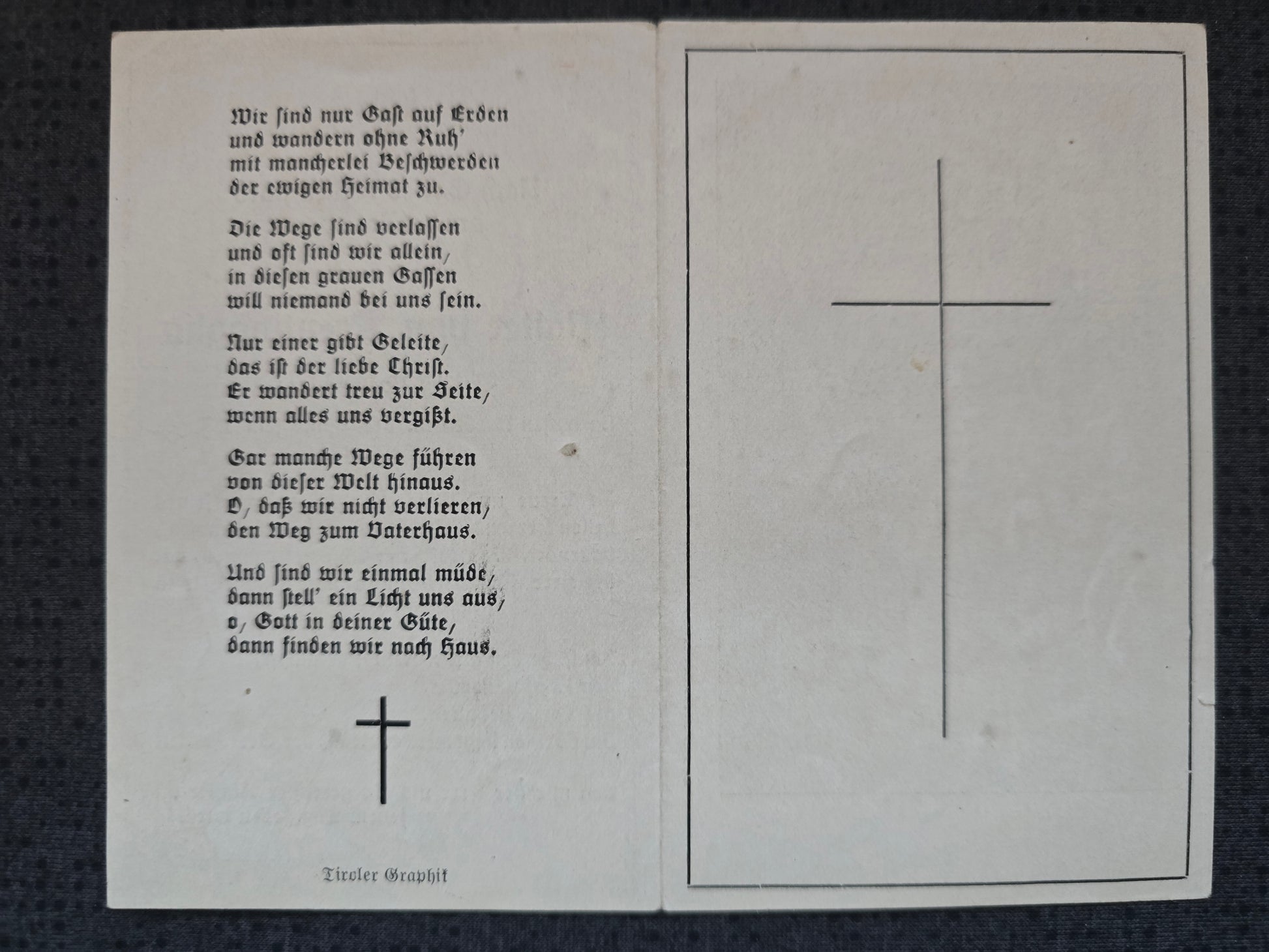 Sterbebild Leutnant Innsbruck 12. Komp. Geb.-Jäger Regt. 136 Eismeerfront Teufelsberg Finnland Russland