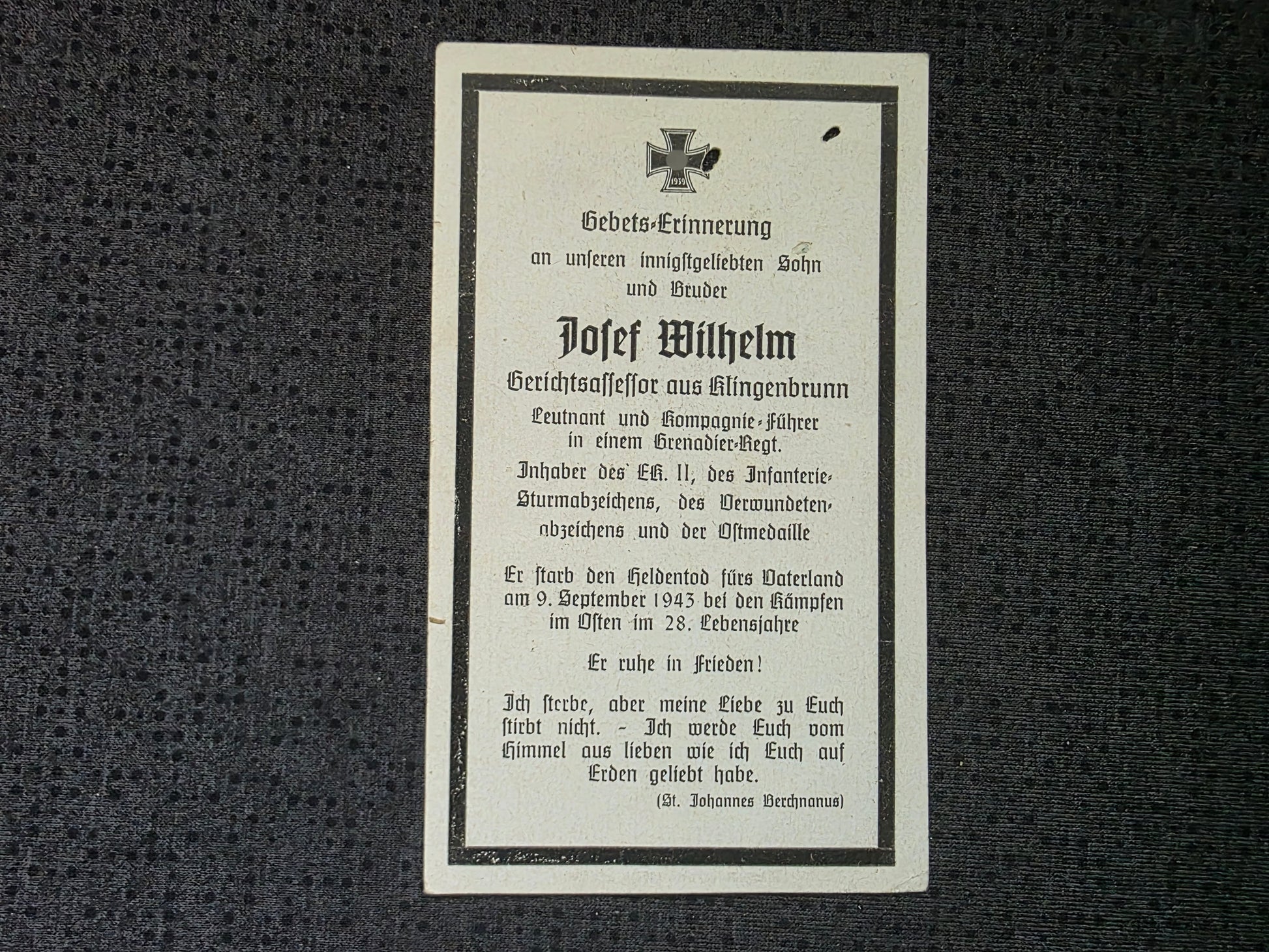 Sterbebild Leutnant & Kompanieführer Klingenbrunn Grenadier Regt. Koman Ukraine
