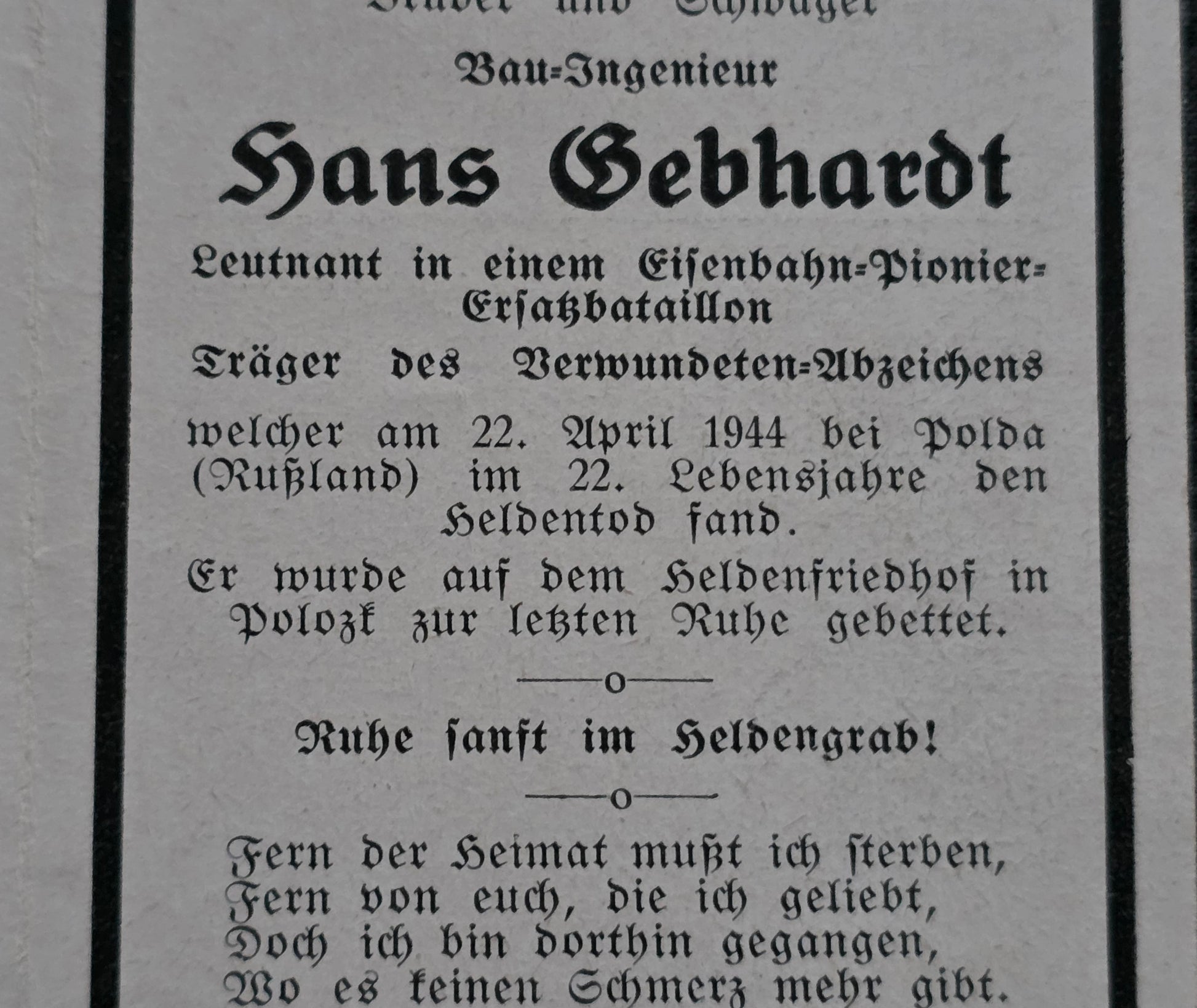 Gefallen am 22.04.1944 bei Polota
