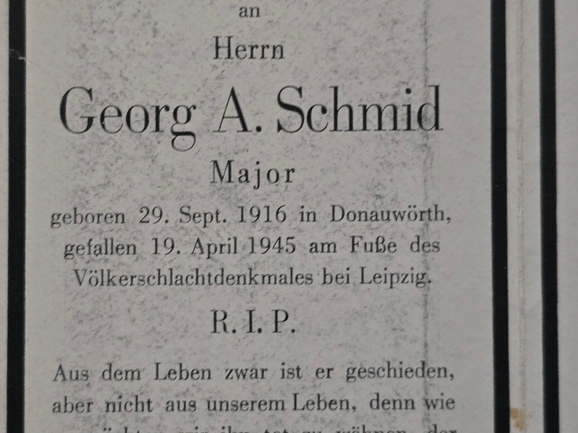 Sterbebild Major Donauwörth Endkampf Völkerschlachtdenkmal Leipzig Deutschland