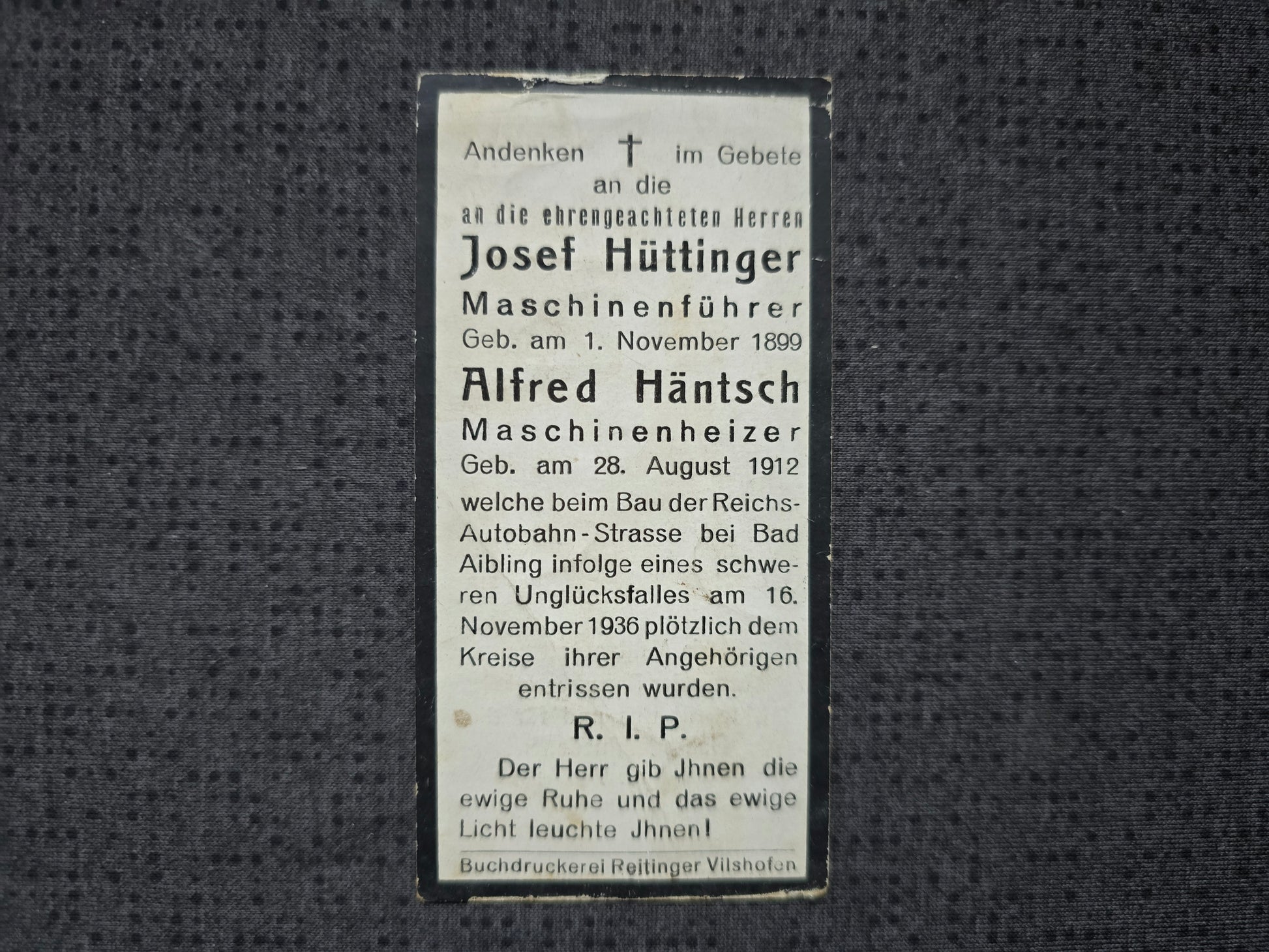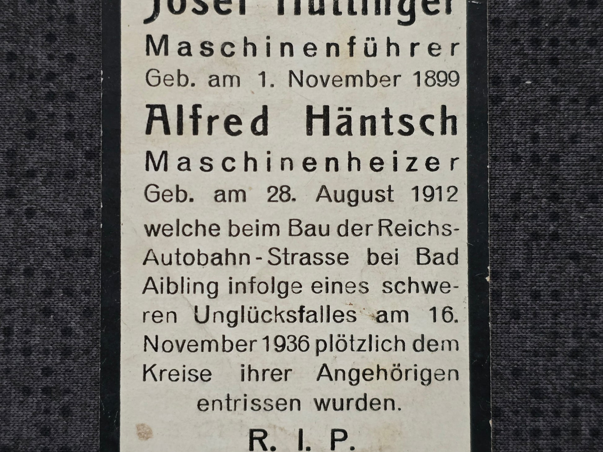 Sterbebild Maschinenführer & Maschinenheizer Bau Reichsautobahn Unfall Bad Aibling
