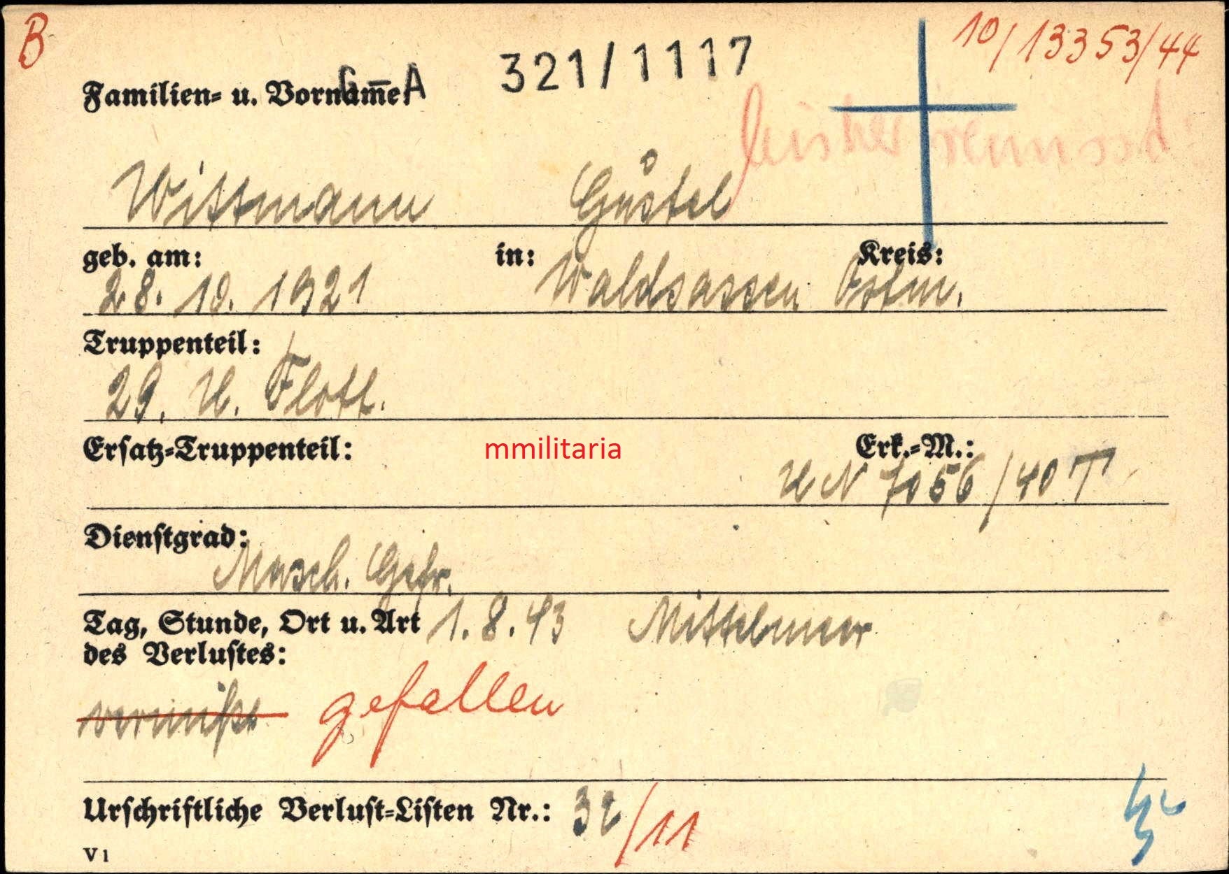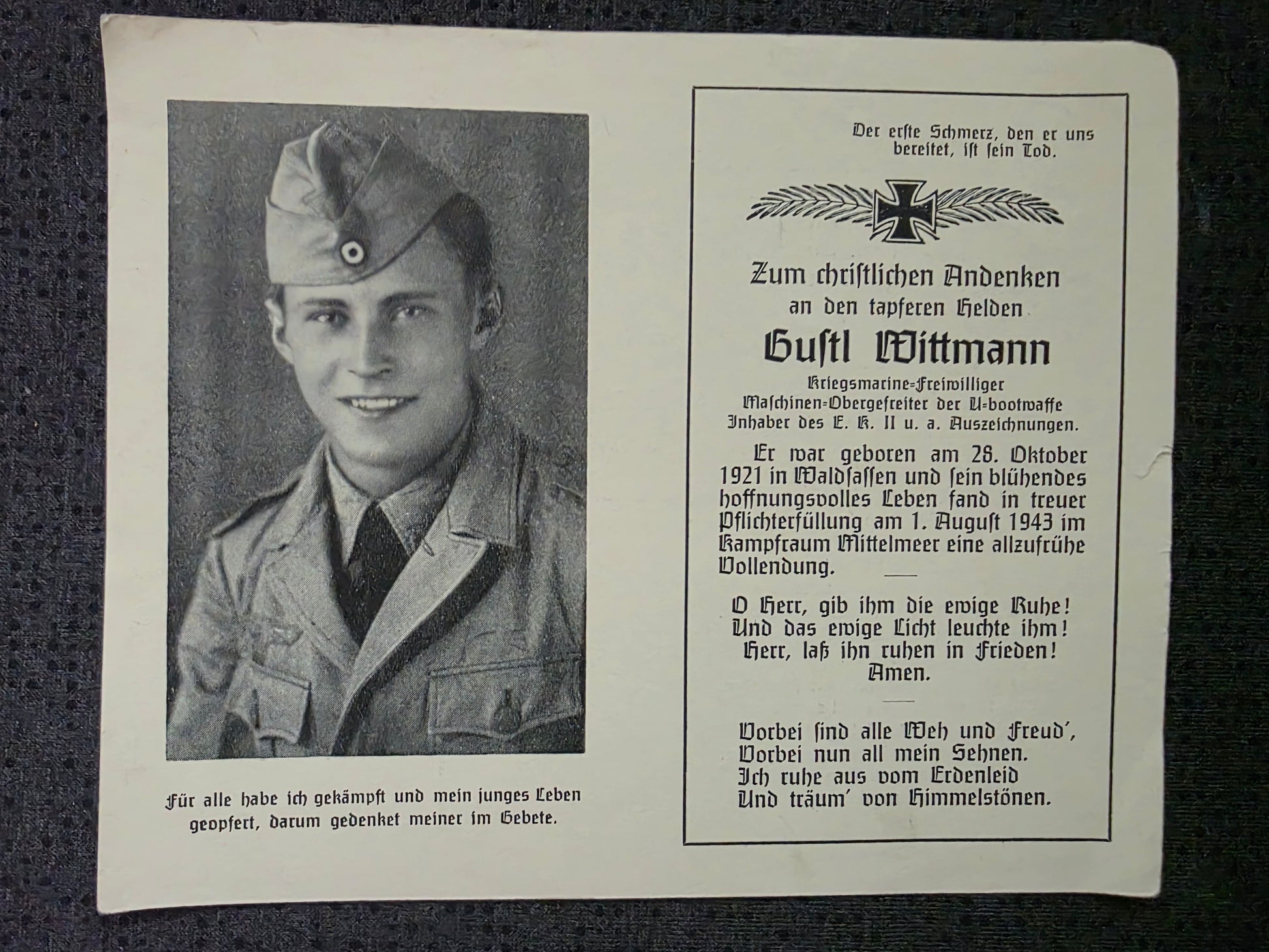 Sterbebild Maschinenobergefreiter Waldsassen 29. U-Boot Flottille U604 Mittelmeer