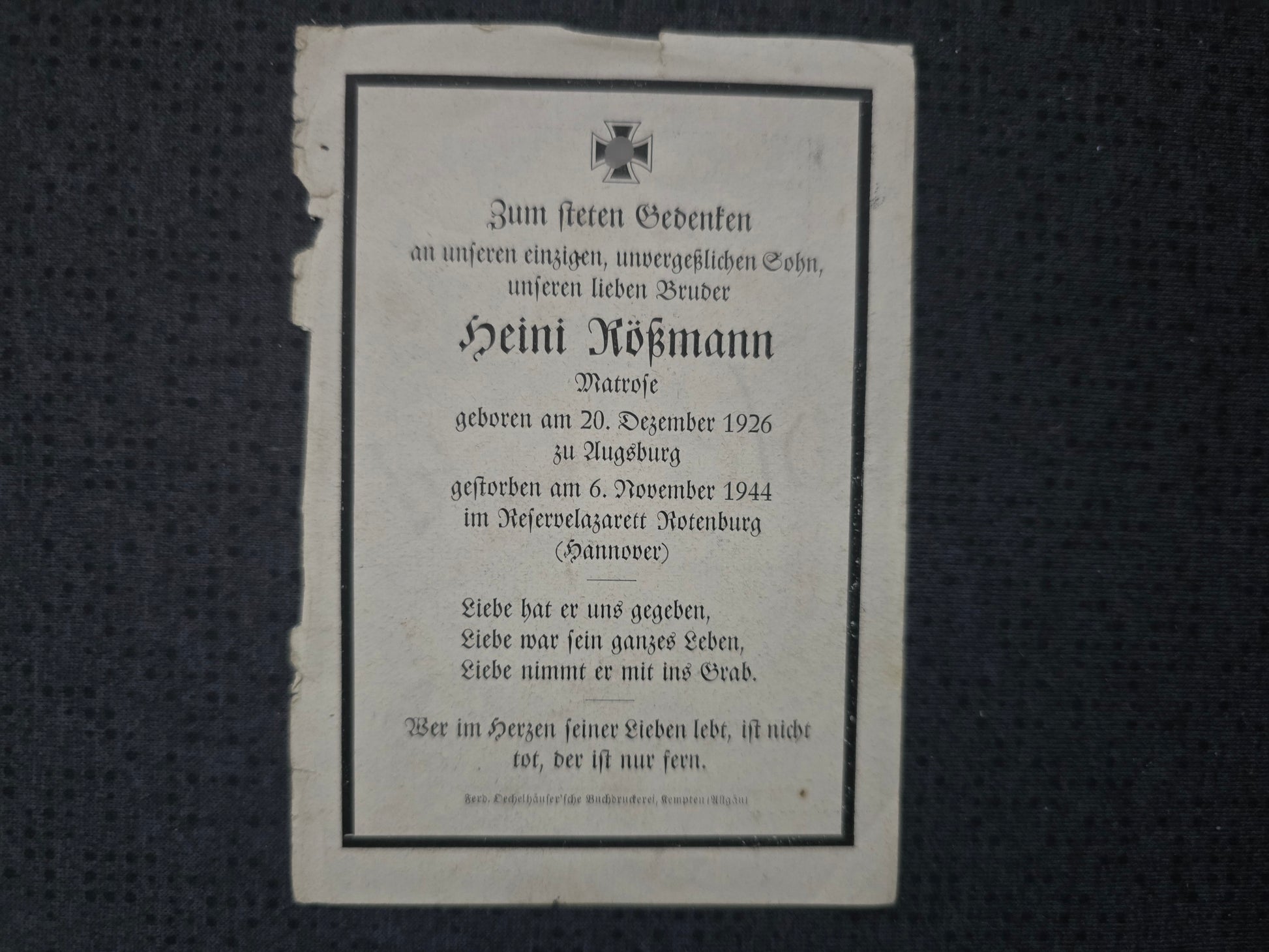 Sterbebild Matrose Augsburg Rotenburg/Wümme Hannover Deutschland