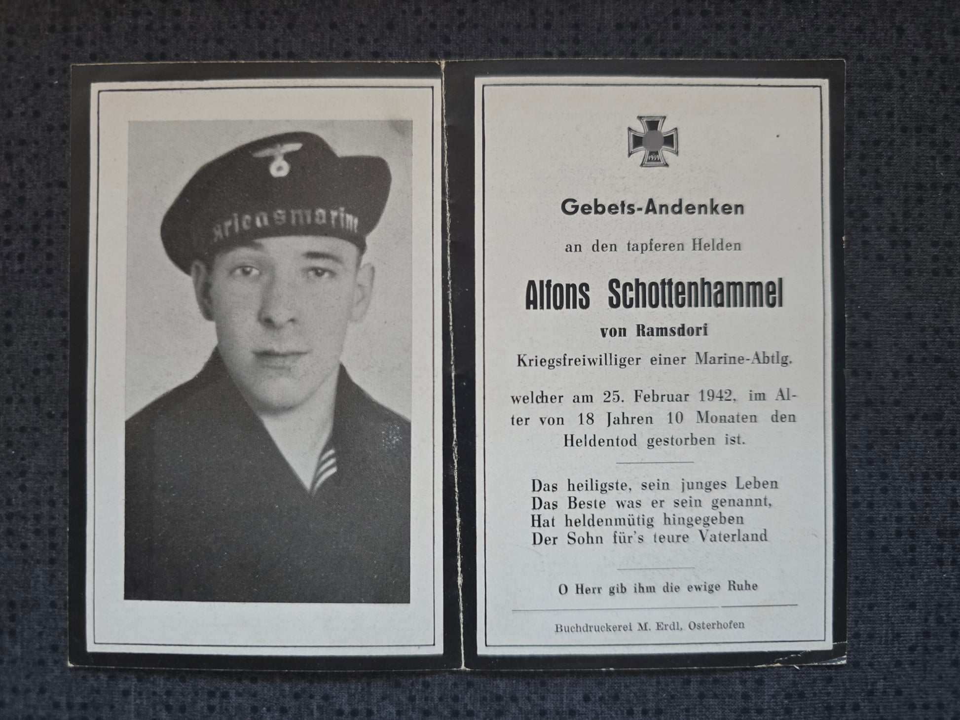 Sterbebild Matrose Ramsdorf Kriegsfreiwilliger Kriegsmarinewerft Kiel