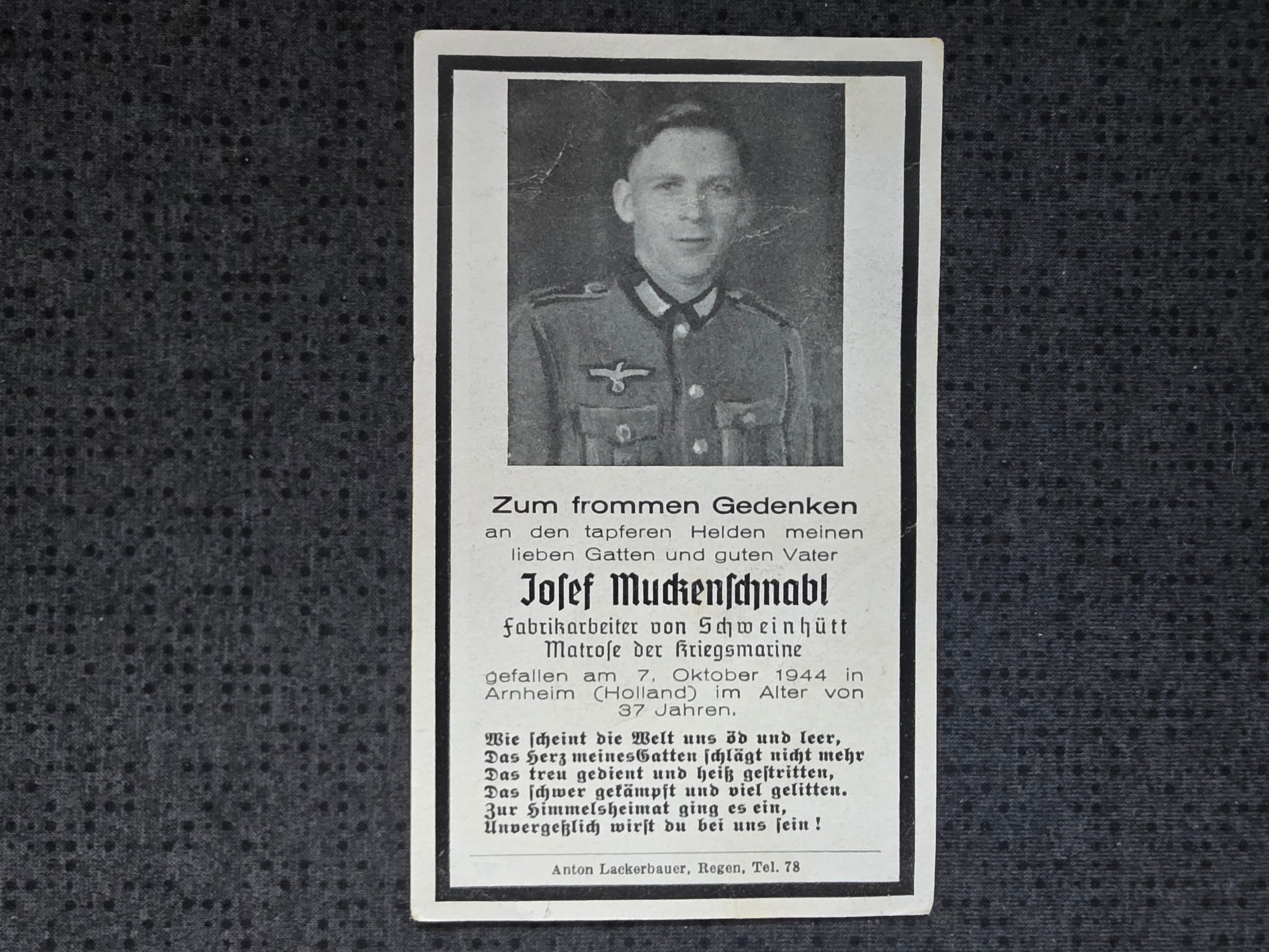 Sterbebild Matrose Schweinhütt Kriegsmarine Arnheim Ysselsteyn Holland