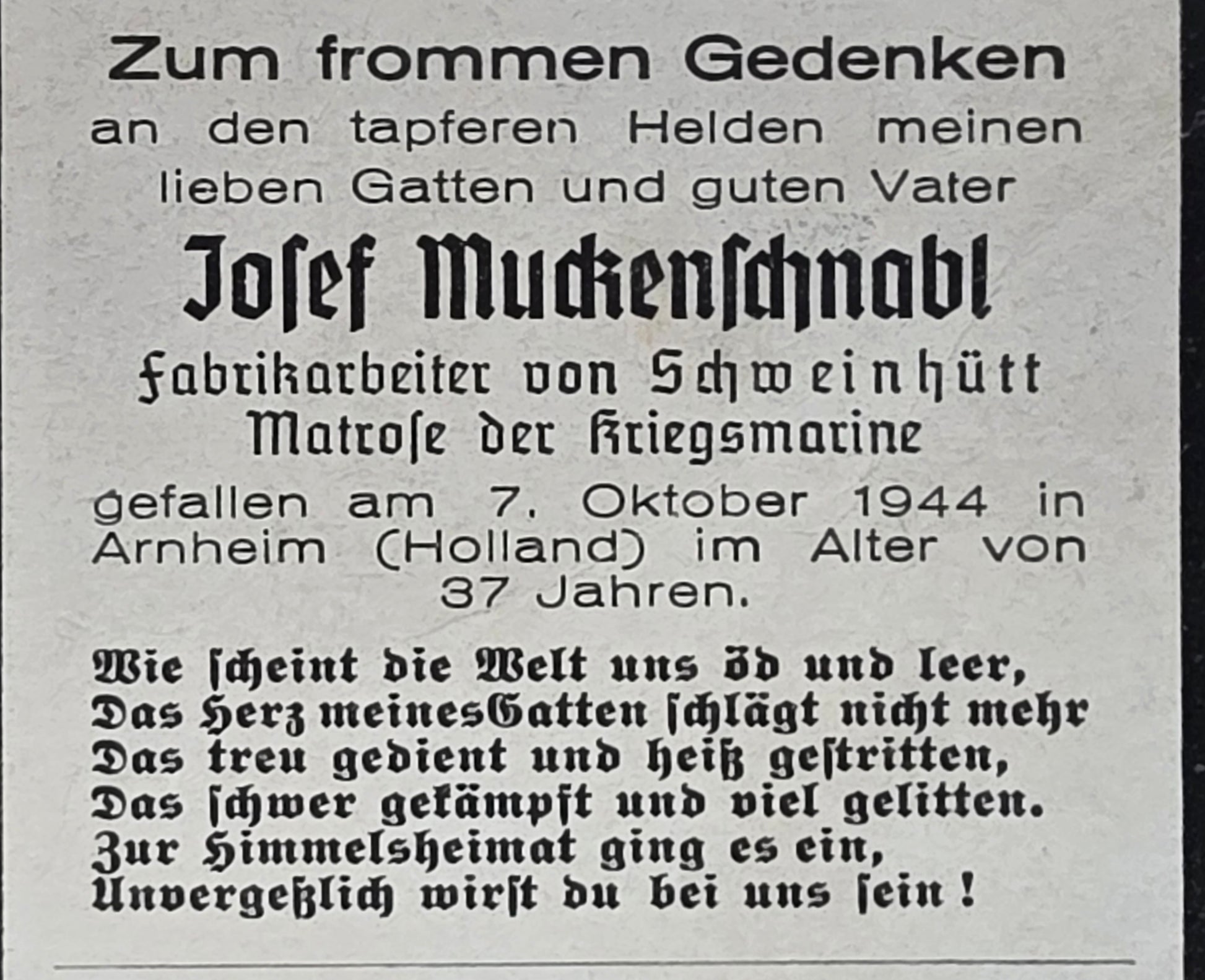 Gefallen am 07.10.1944 in Arnheim (Holland)