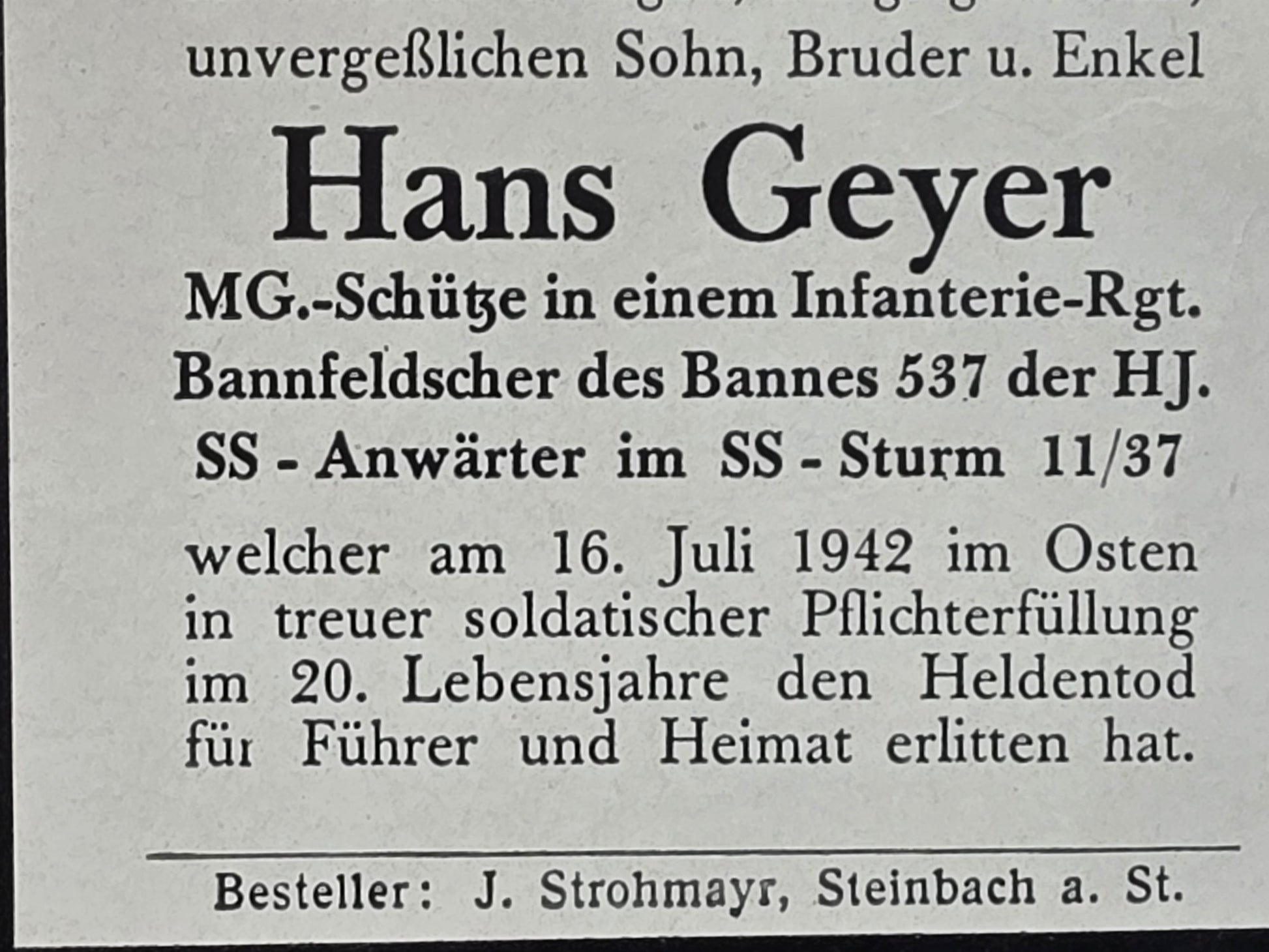 Gefallen am 16.07.1942 im Osten
