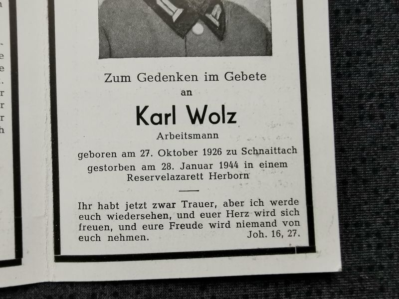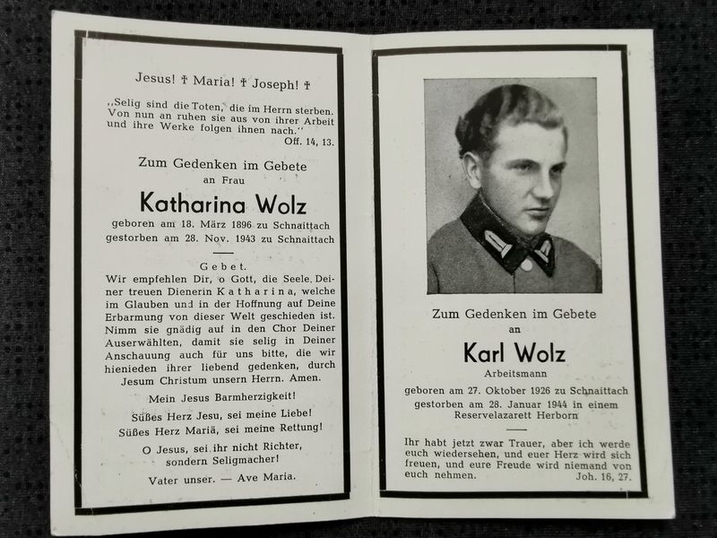 Sterbebild Mutter & Sohn Arbeitsmann RAD Schnaittach 18 Jahre Lazarett Herborn Deutschland