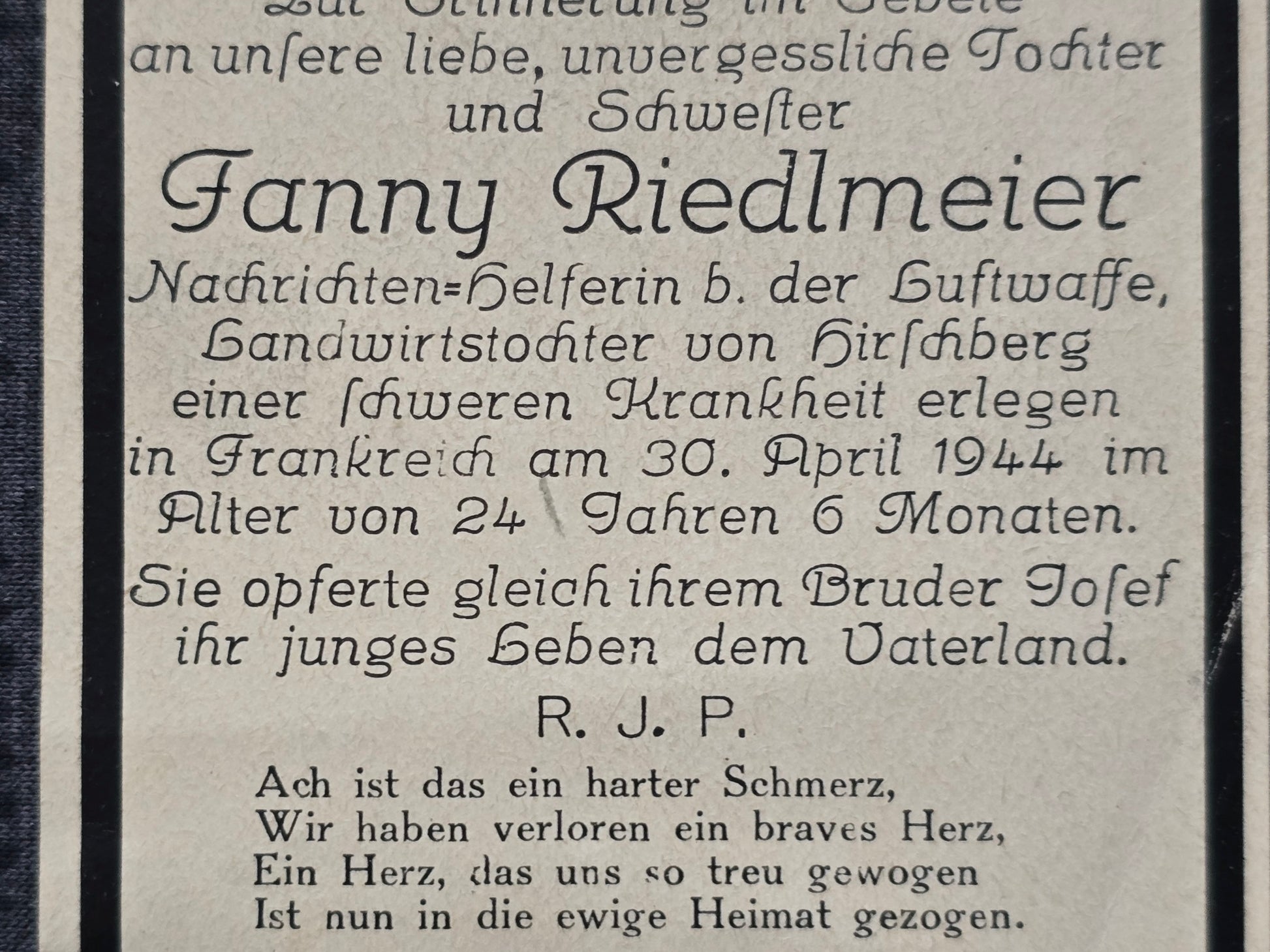 Sterbebild Nachrichten-Helferin Luftwaffe Frankreich
