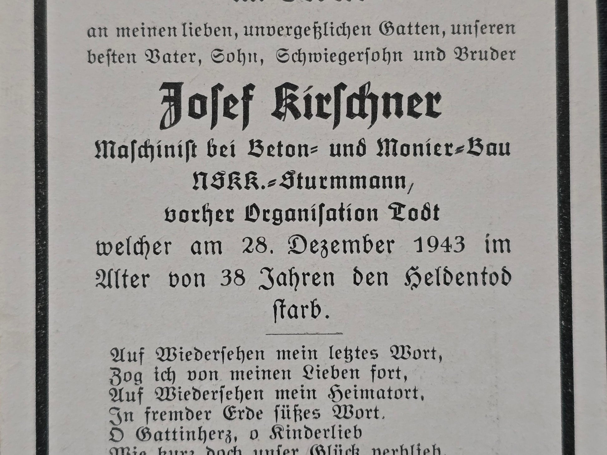 Sterbebild NSKK-Sturmmann vorher Organisation Todt O.T.