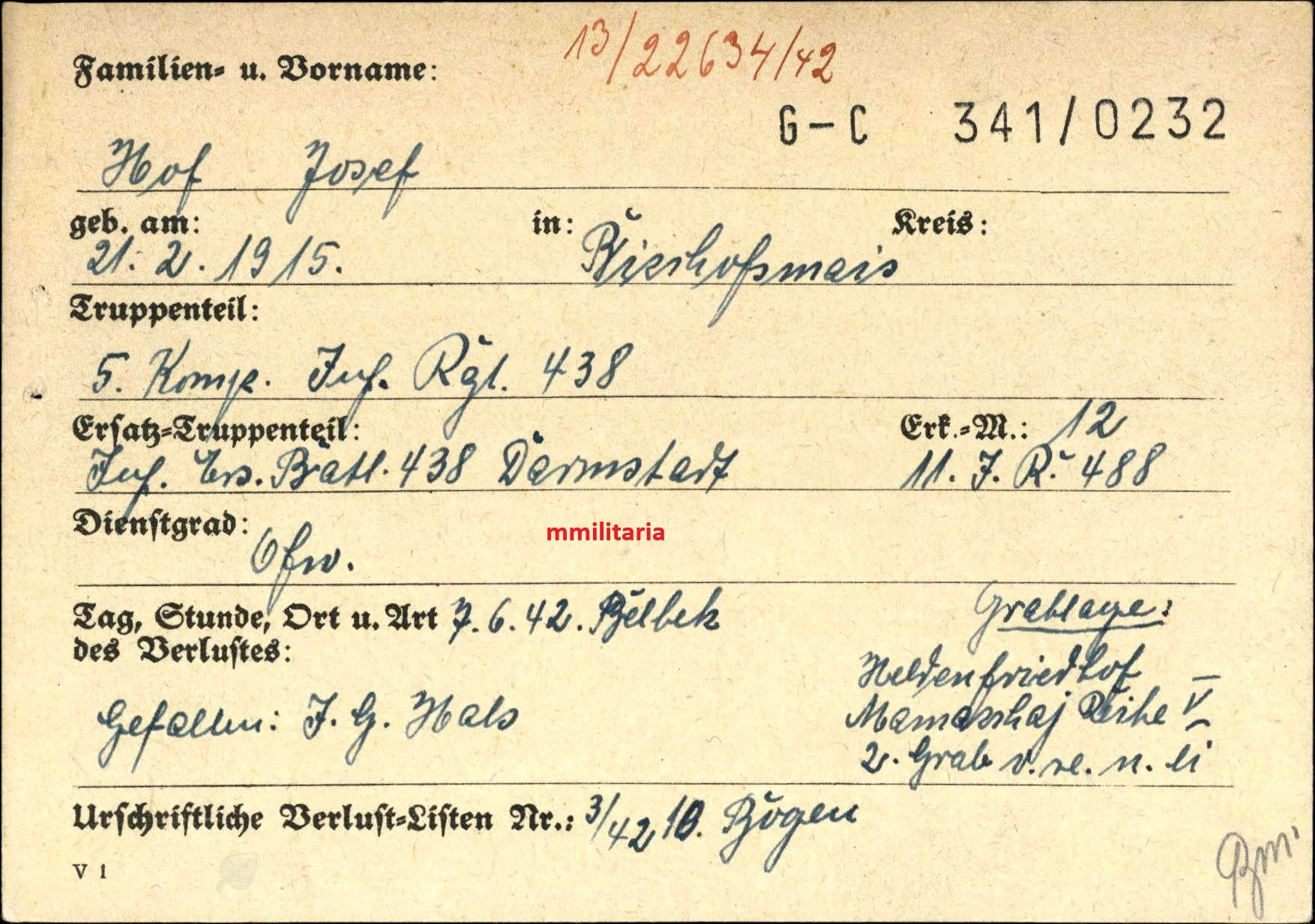 Gefallen am 07.06.1942 bei Belbeck / Sewastopol (Ukraine)