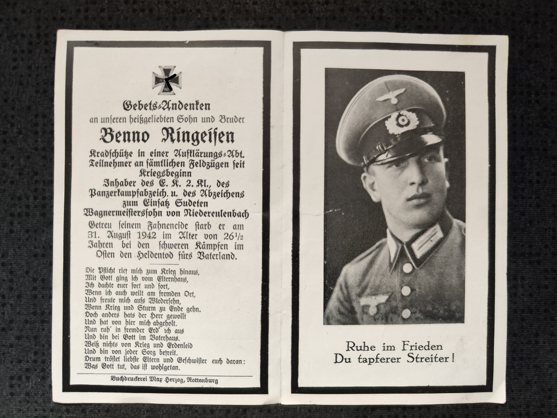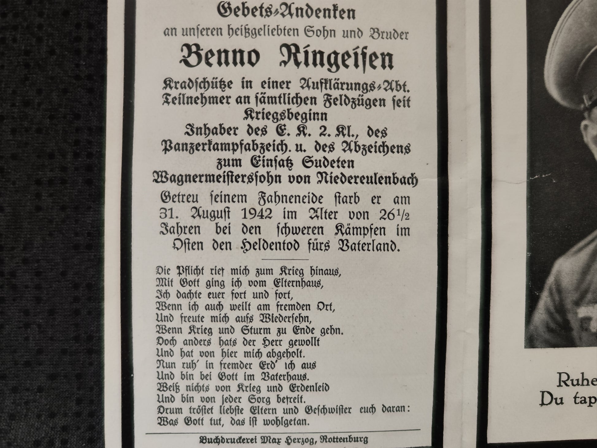 Sterbebild Obergefreiter Niedereulenbach 3. Komp. Krad-Schützen Btl. 34 EK II PSA Sudeten Abz. Bukan Russland