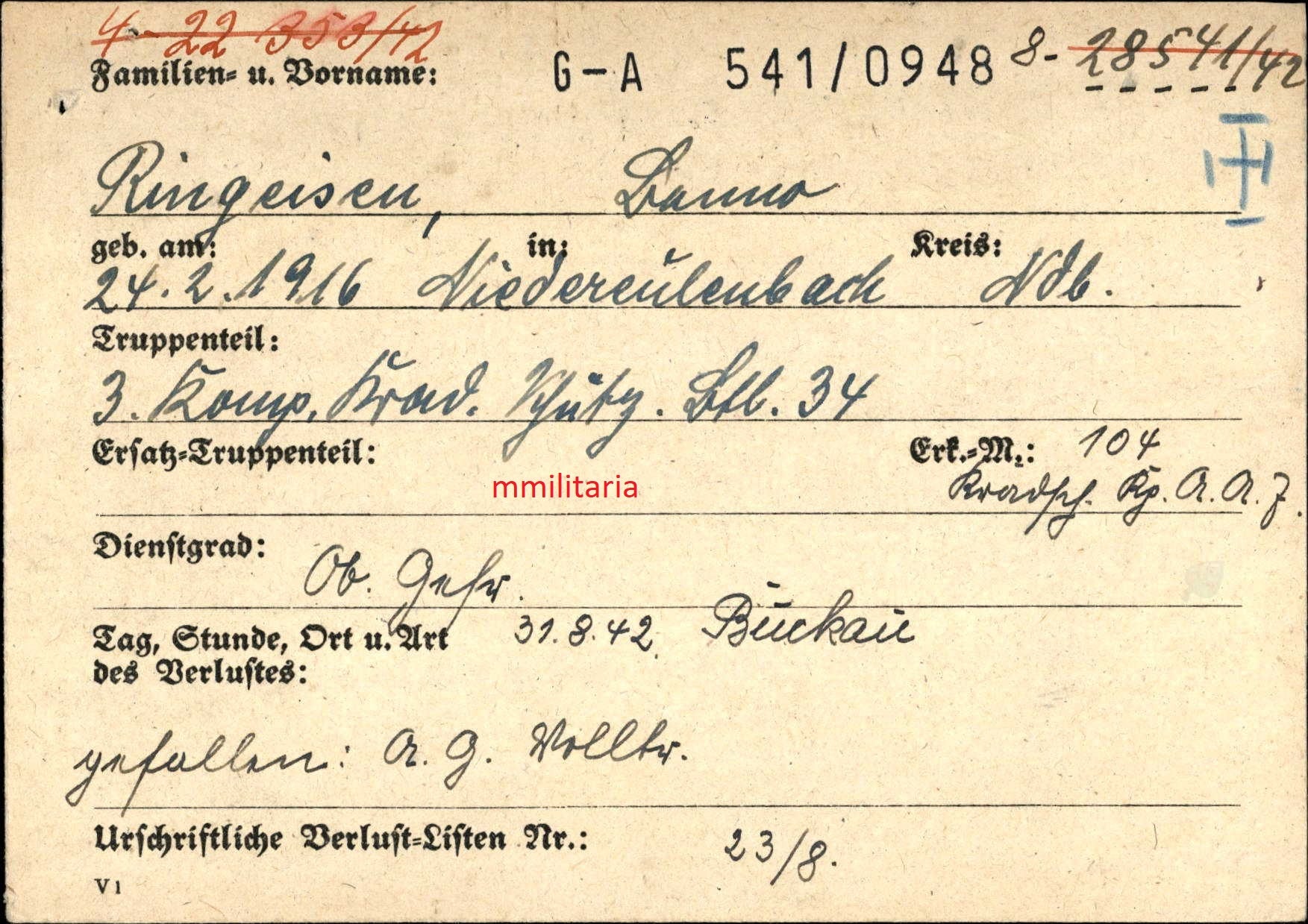 Gefallen am 31.08.1942 in Bukan (Russland)