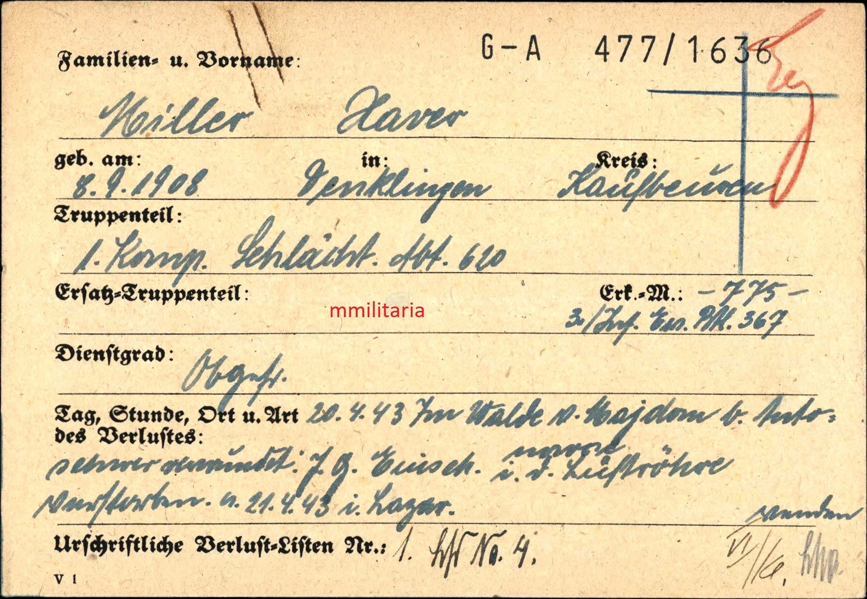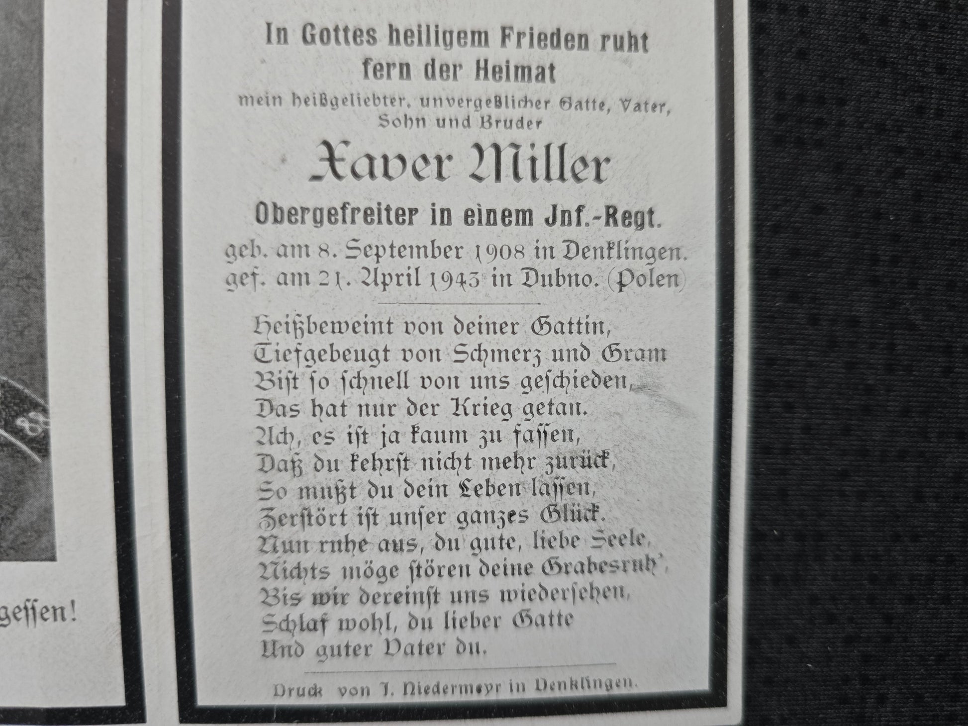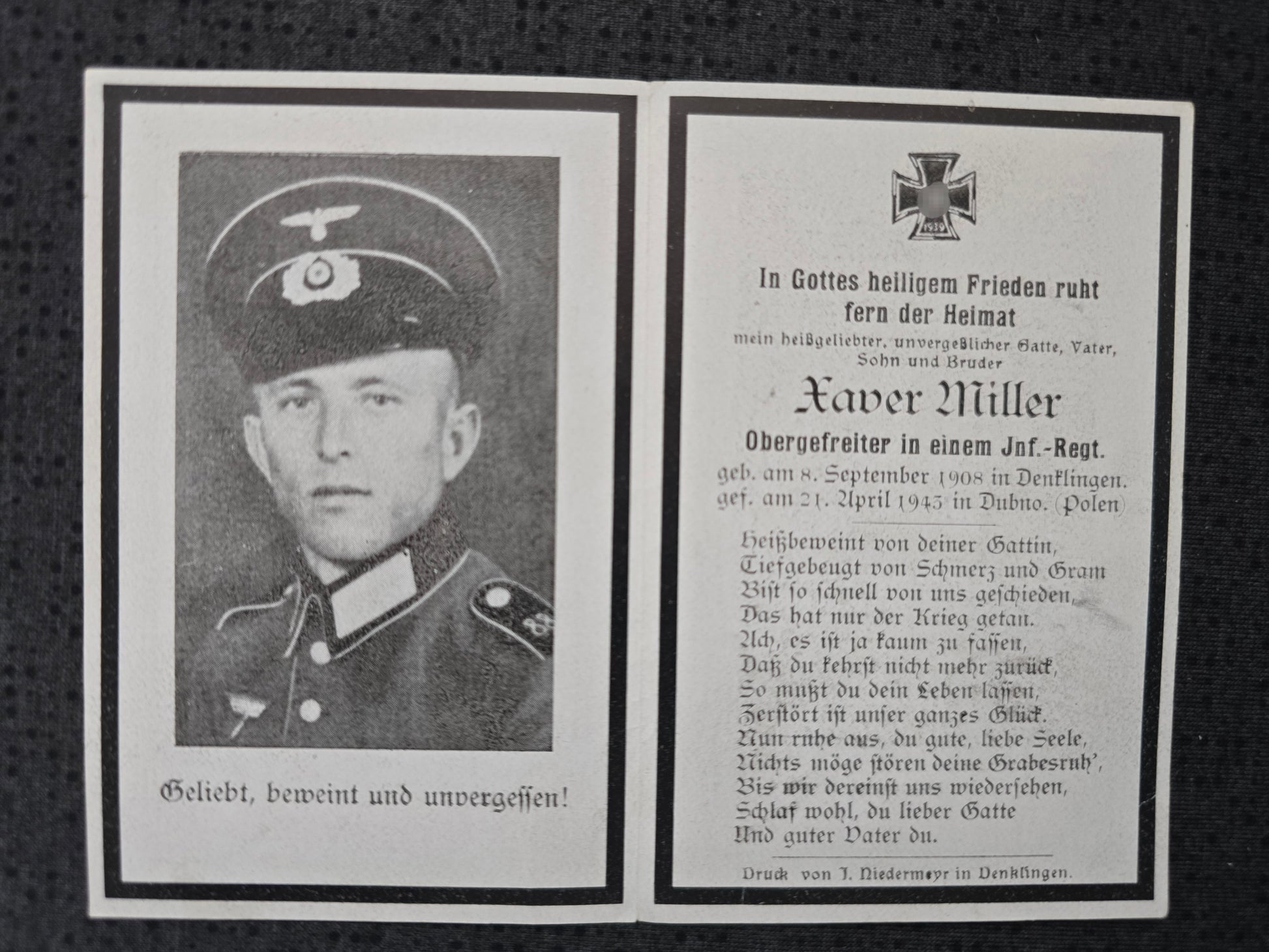 Sterbebild Obergefreiter Denklingen 1. Komp. Schlächterei Abt. 620 Dubno Polen