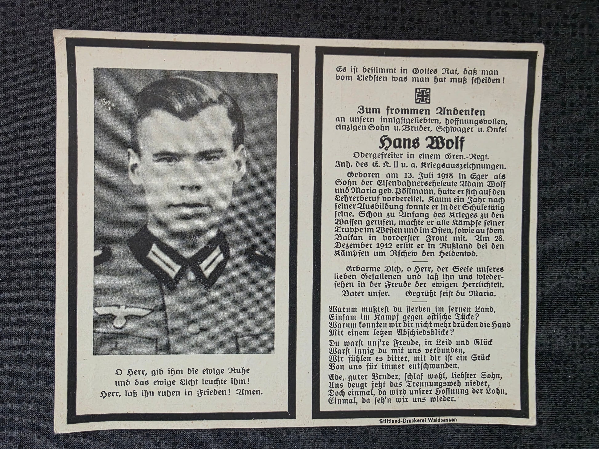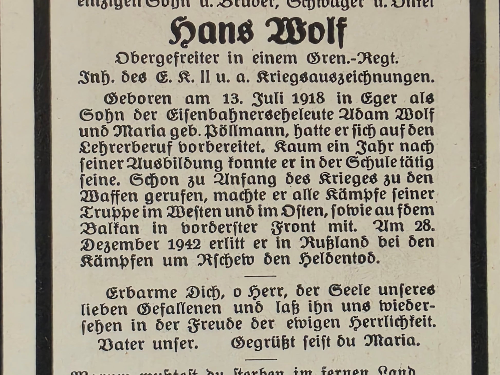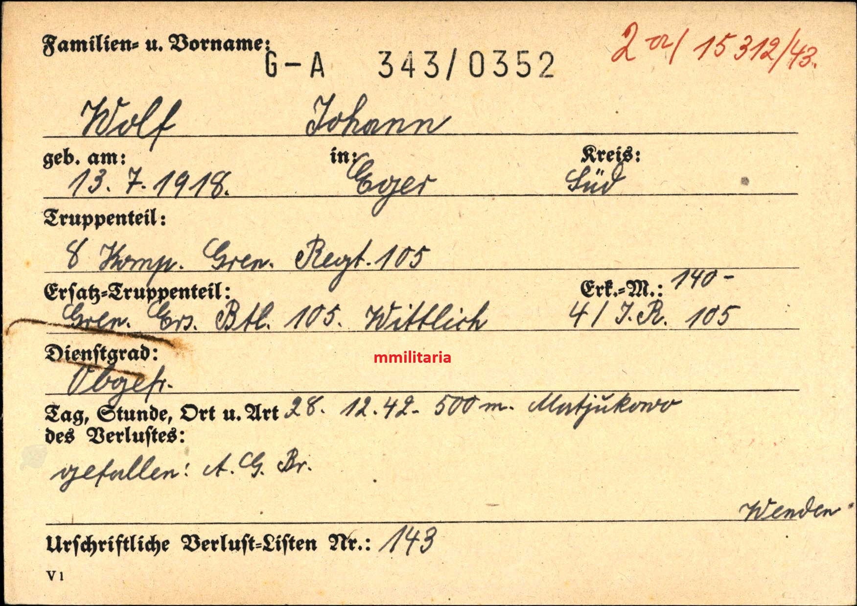 Gefallen am 28.12.1942 bei Matjukowo (Russland)