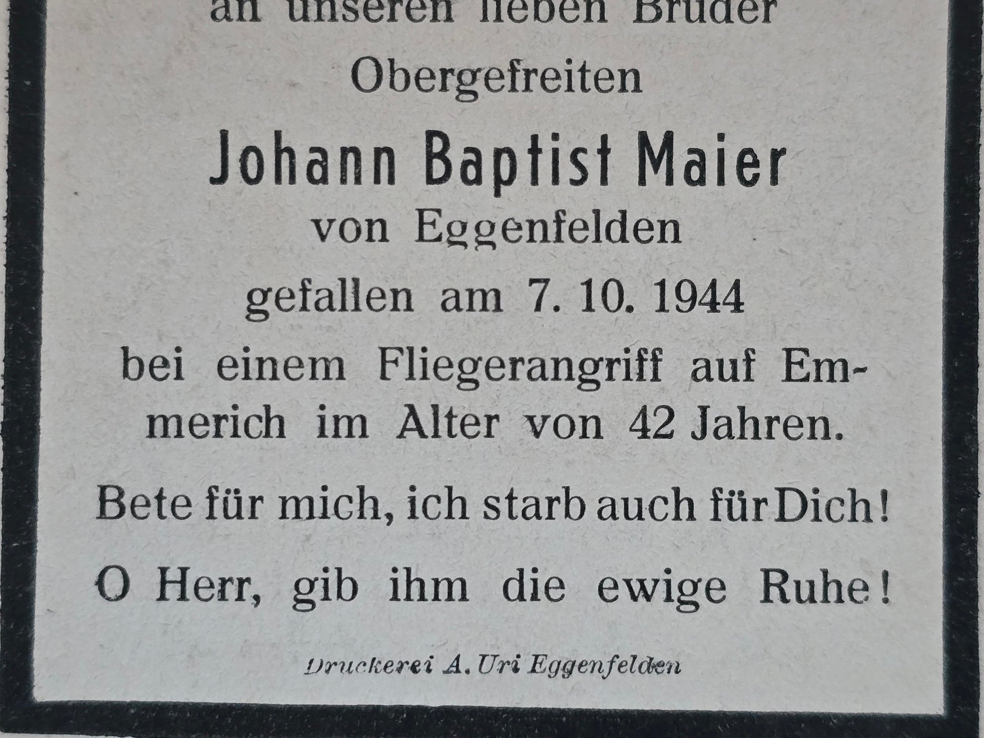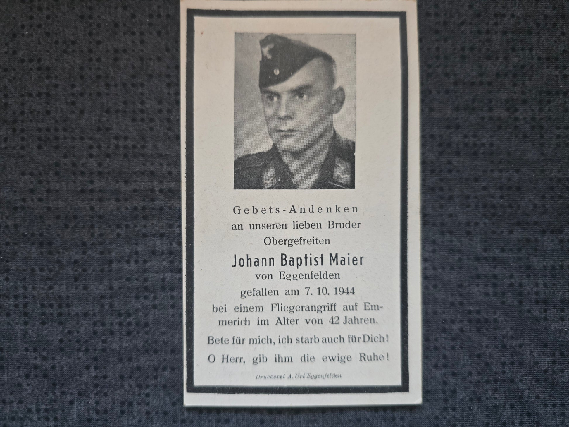 Sterbebild Obergefreiter Eggenfelden Fliegerangriff Emmerich