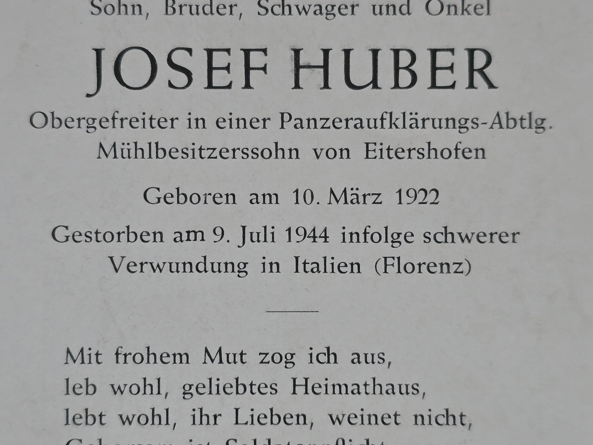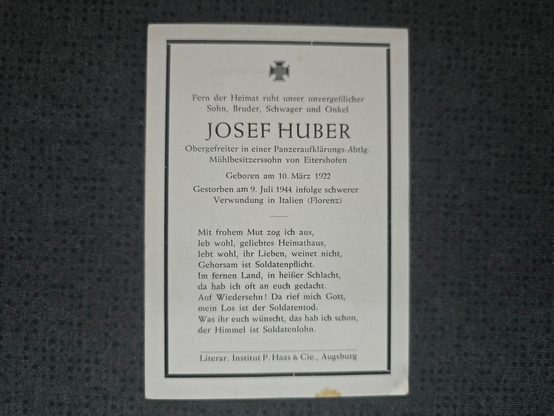 Sterbebild Obergefreiter Eitershofen Panzeraufklärungsabteilung Florenz Italien