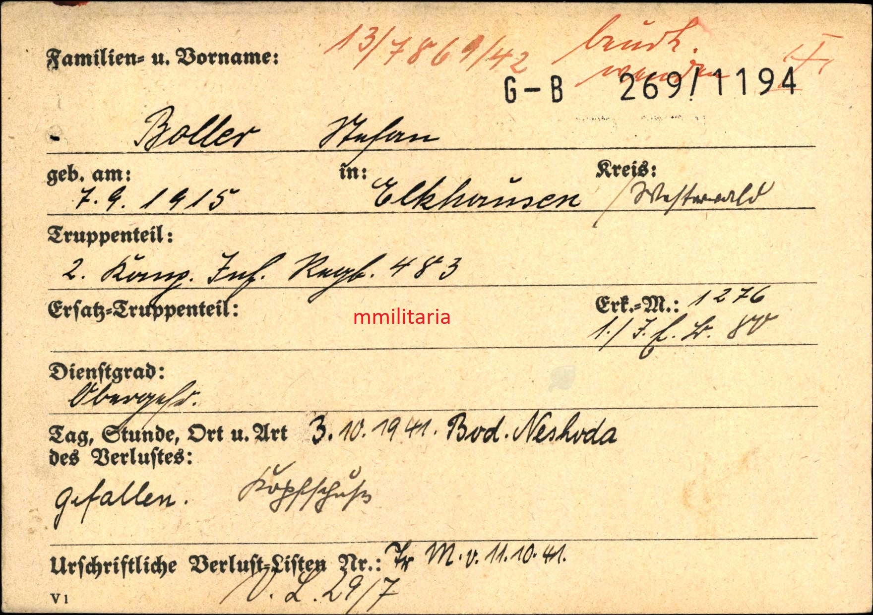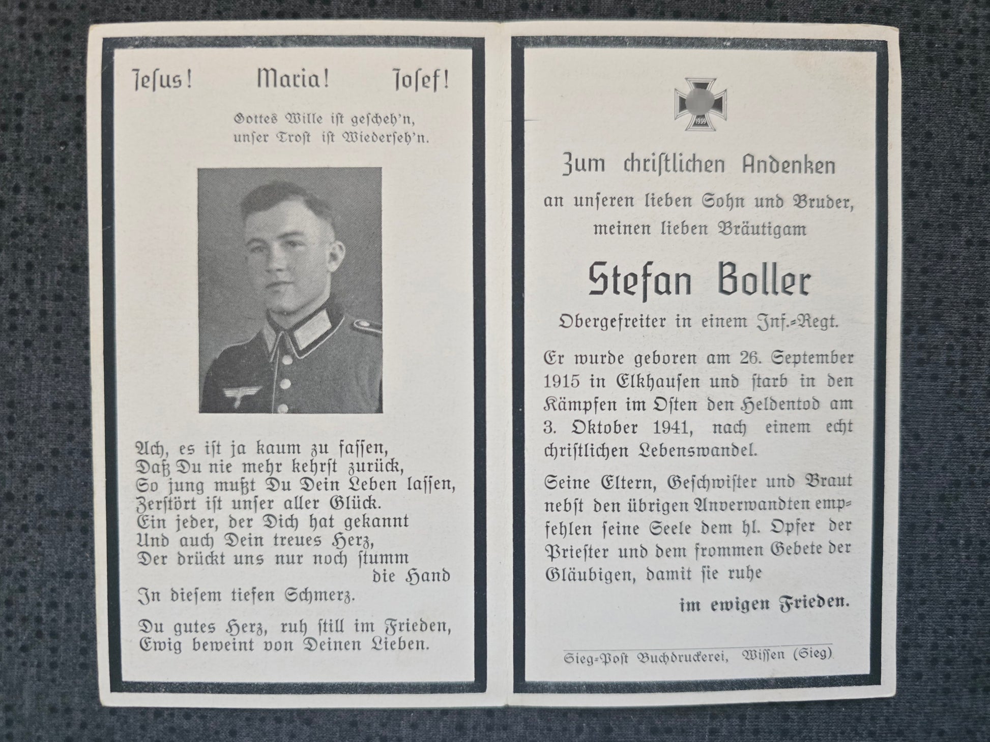 Sterbebild Obergefreiter Elkhausen 2. Komp. Inf. Regt. 483 Russland