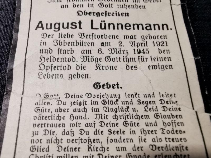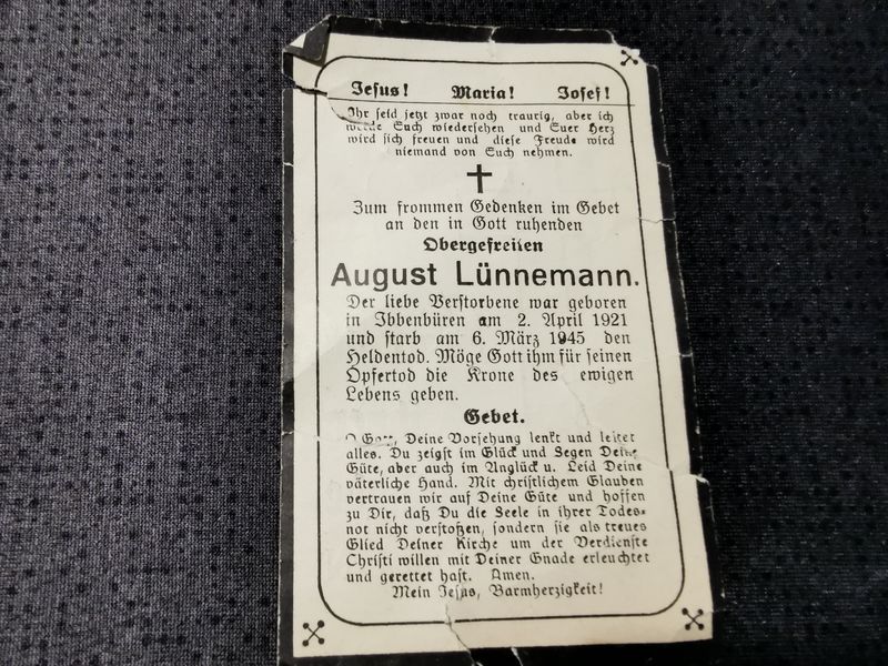Sterbebild Obergefreiter Endkampf Westen Wesseling-Friedensweg Deutschland