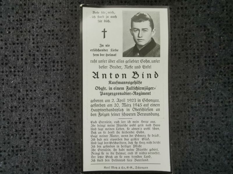Sterbebild Obergefreiter Fallschirm Panzergrenadier Regt. "Hermann Göring" Endkampf Oberschlesien Paczkow Polen