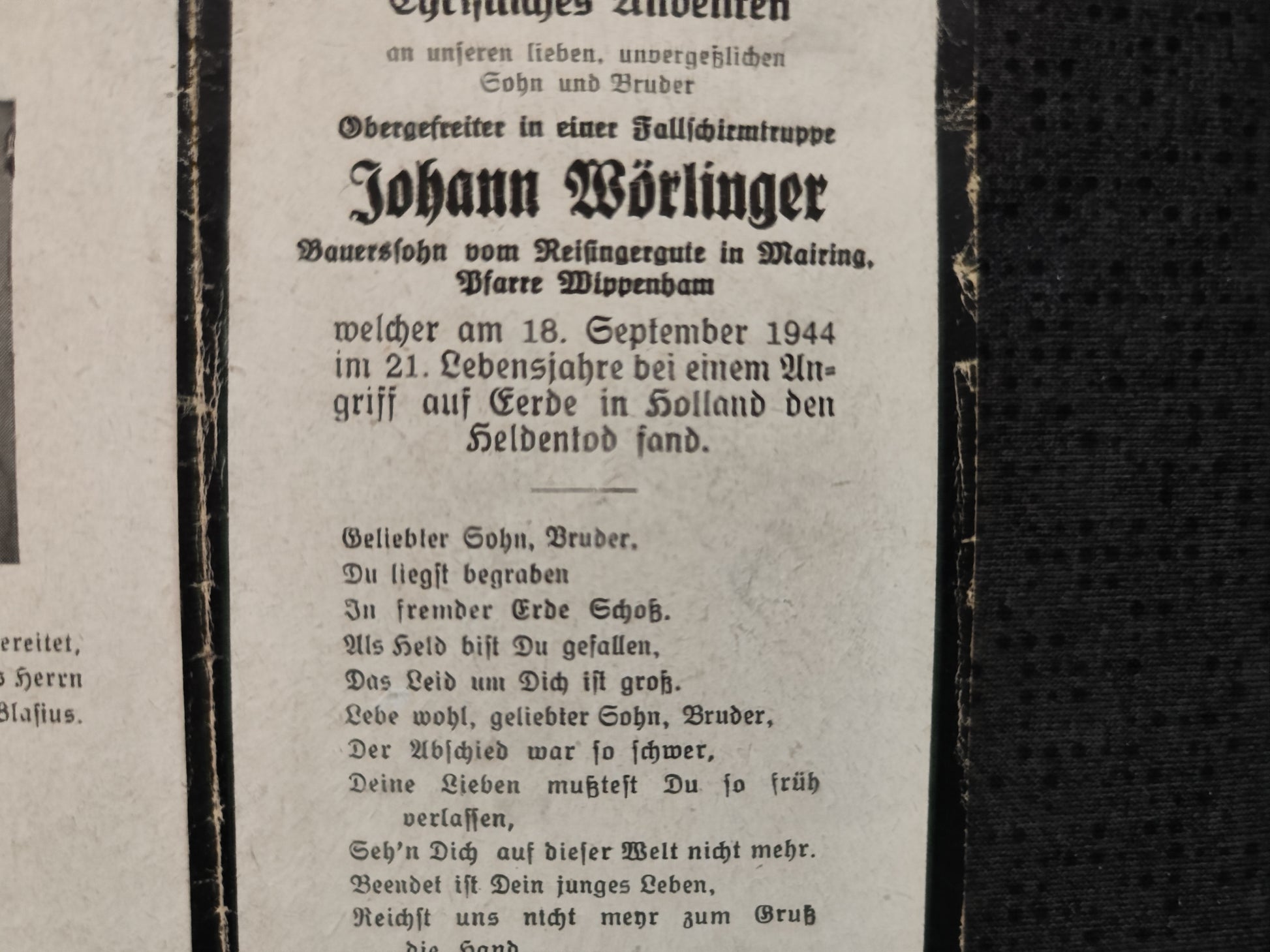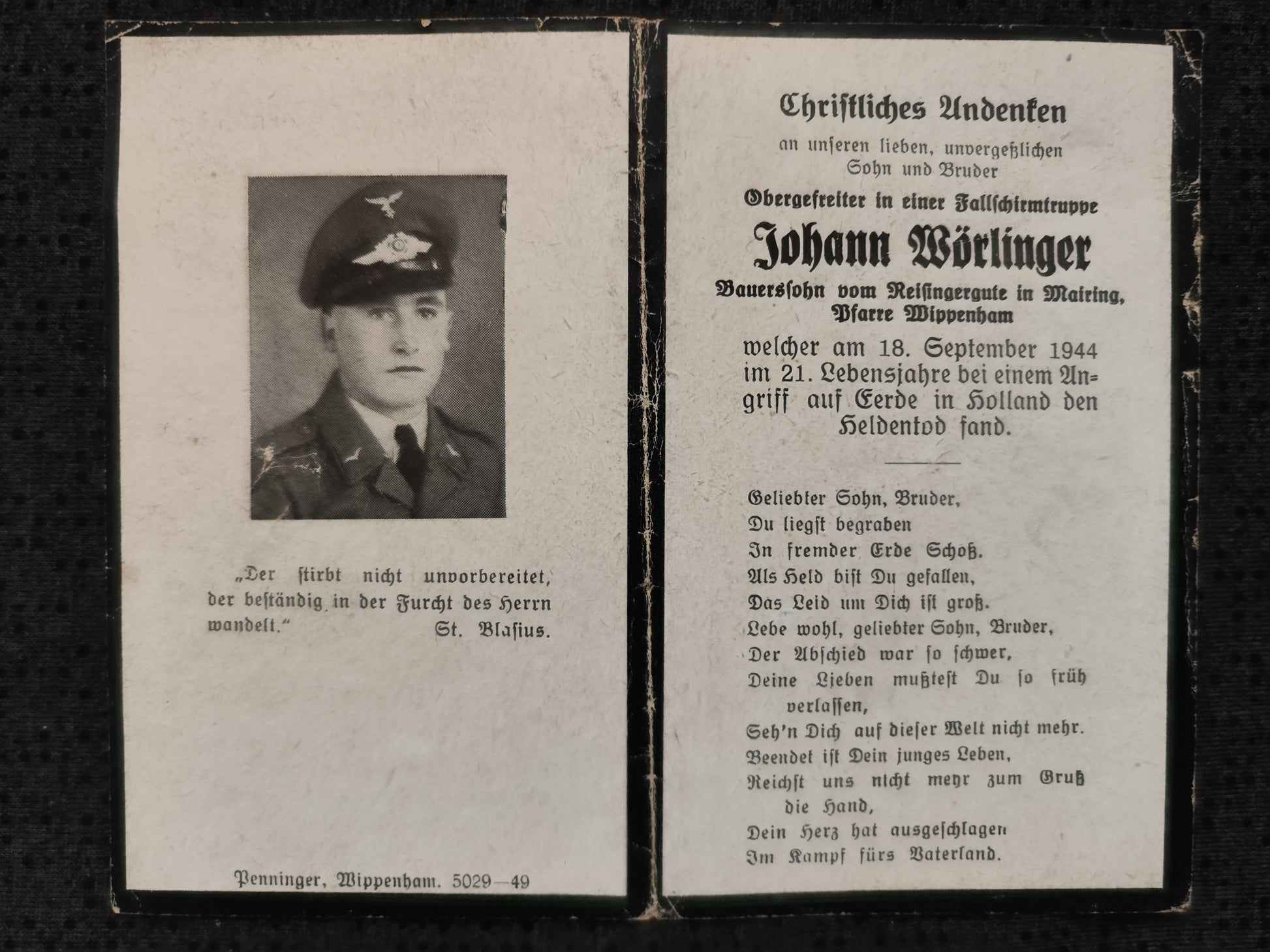 Sterbebild Obergefreiter Fallschirmjäger Regt. Eerde Orthen Ysselsteyn Holland