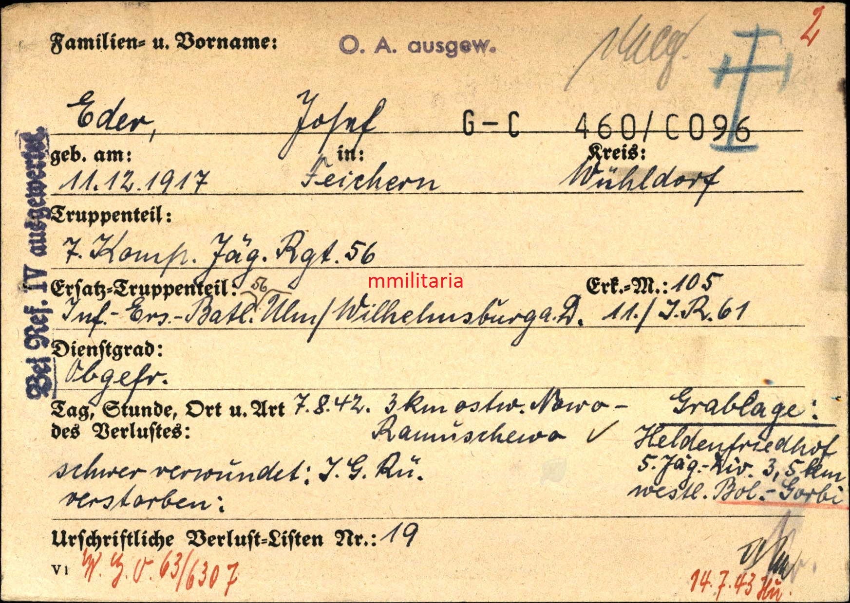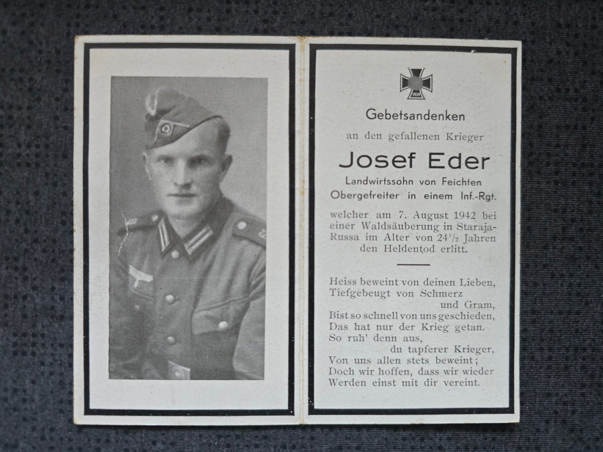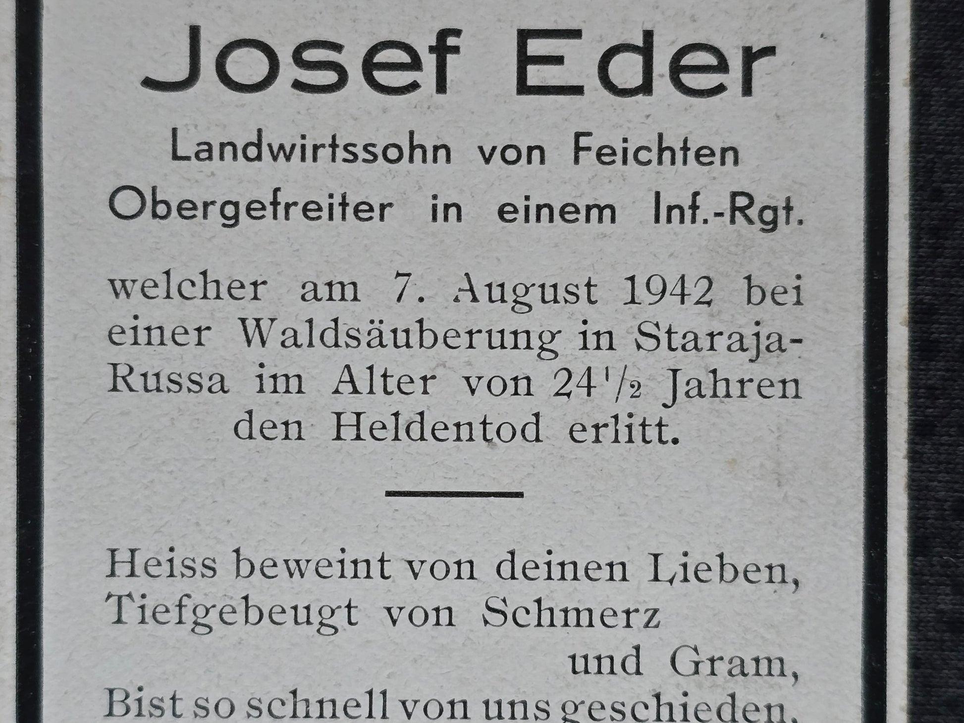 Sterbebild Obergefreiter Feichten 7. Komp. Jäger Regt. 56 Waldsäuberung Staraja-Russa Russland