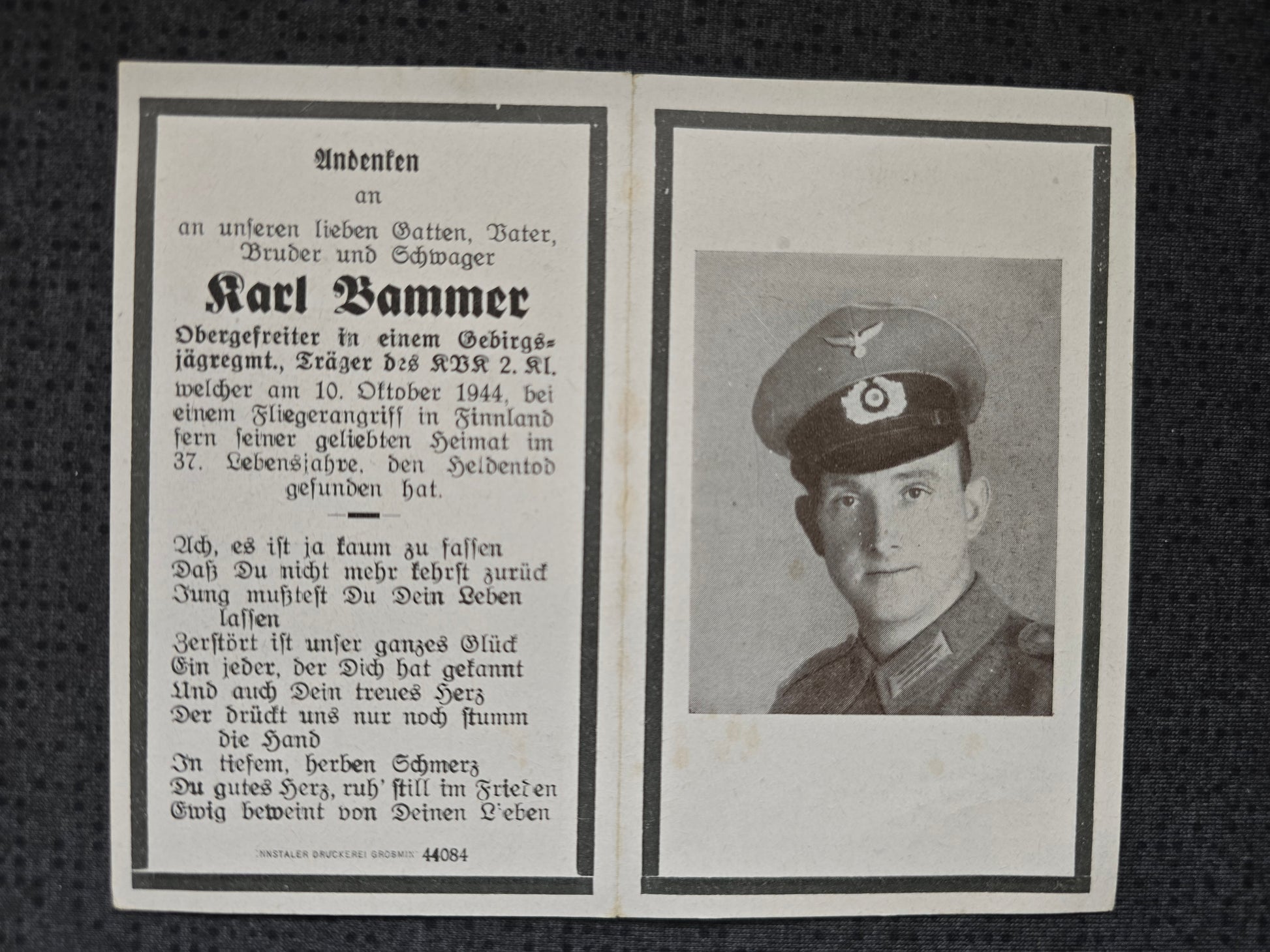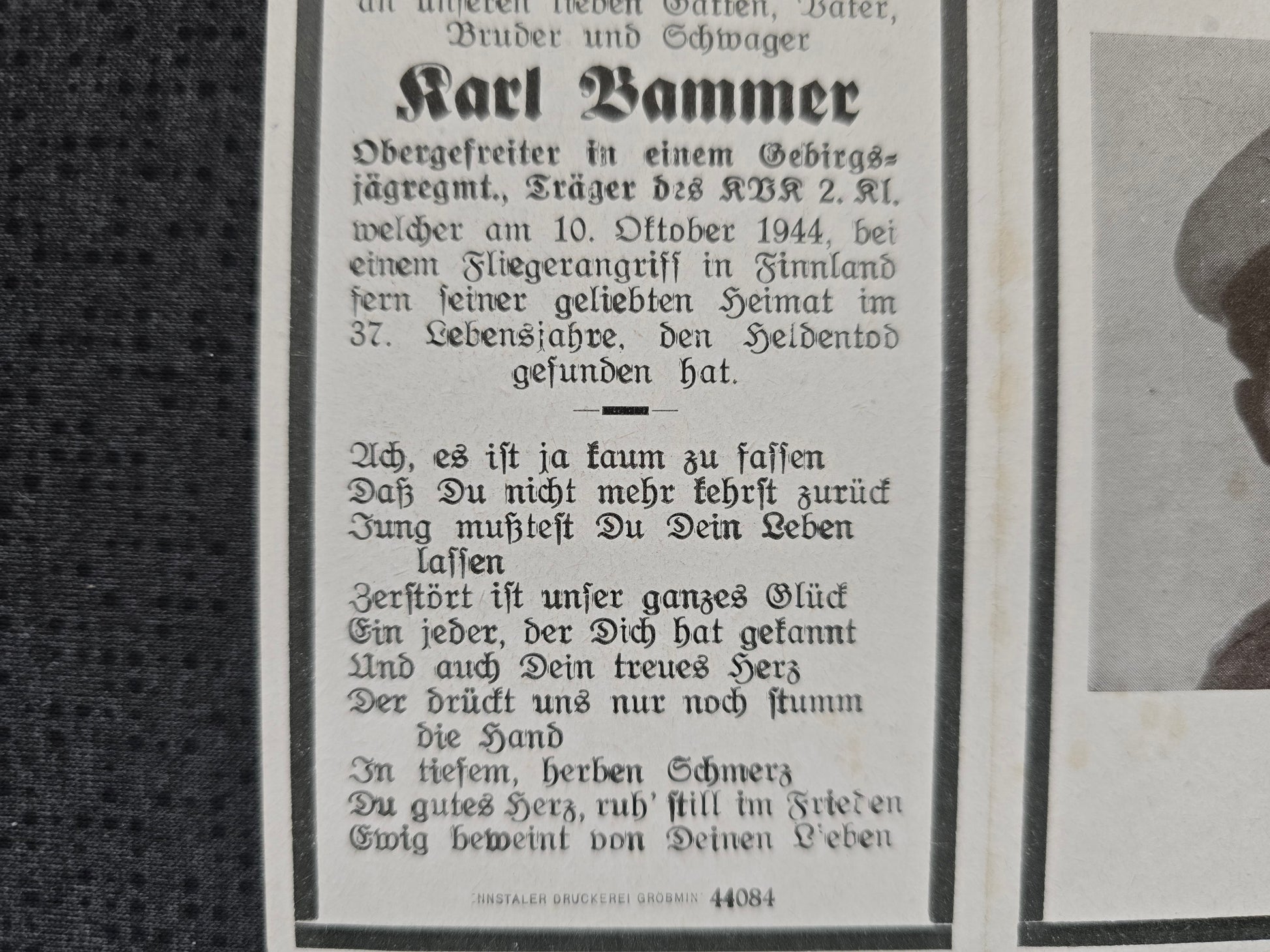 Sterbebild Obergefreiter Gebirgsjäger Regt. Fliegerangriff Finnland