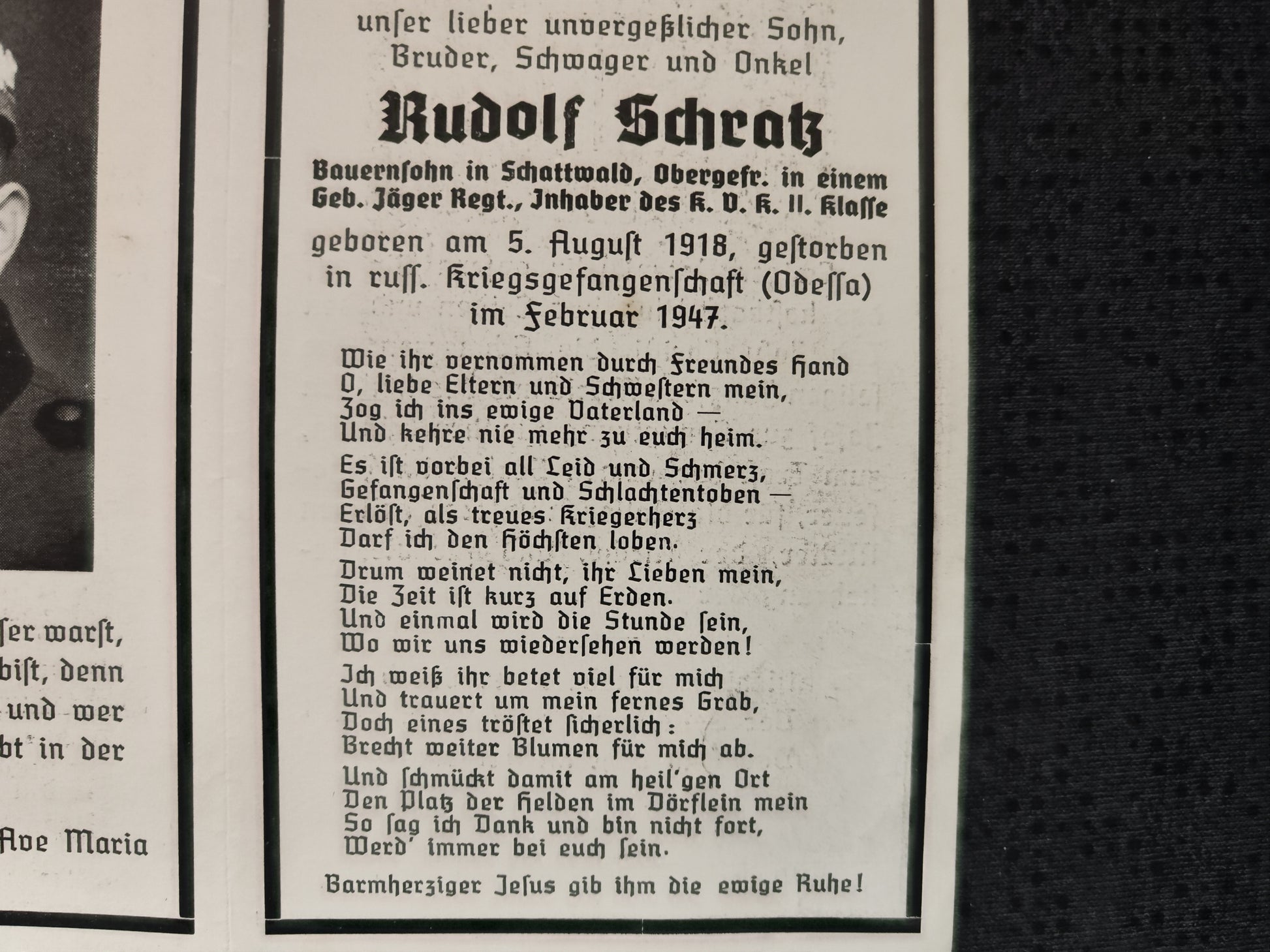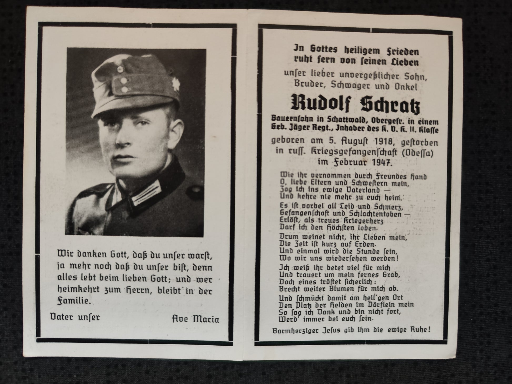 Sterbebild Obergefreiter Gebirgsjäger Regt. Gefangenschaft Odessa Ukraine