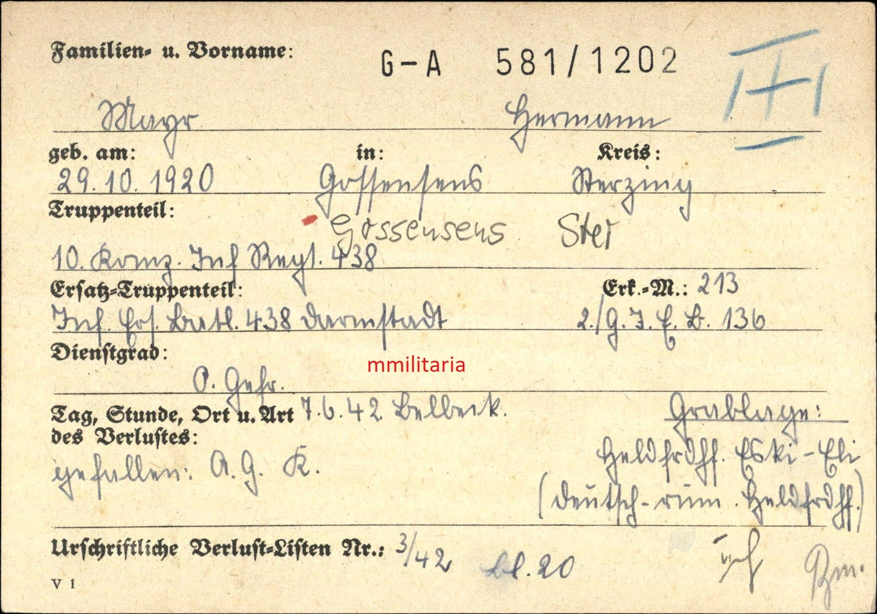 Gefallen am 07.06.1942 in Belbeck (Russland)
