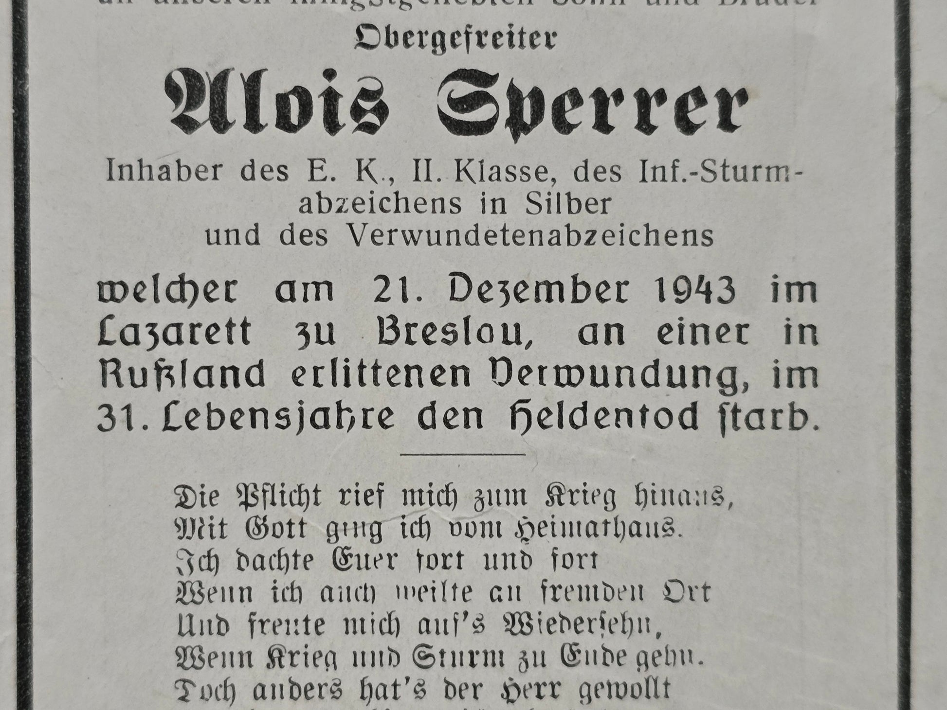 Sterbebild Obergefreiter Grünberg 7. Komp. Gren. Regt. 258 Lazarett Breslau Wroclaw Polen