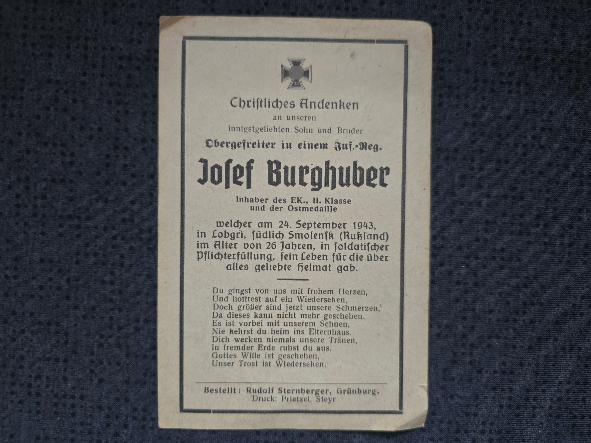 Sterbebild Obergefreiter Grünburg 5. Komp. Gren. Regt. 313 Smolensk Russland