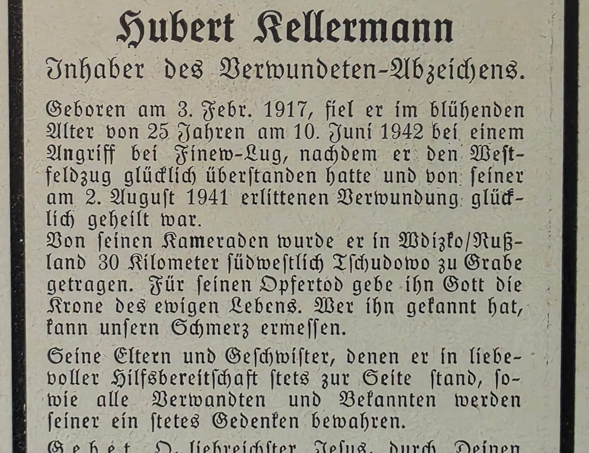 Gefallen am 10.06.1942 in Finew Lug (Russland)