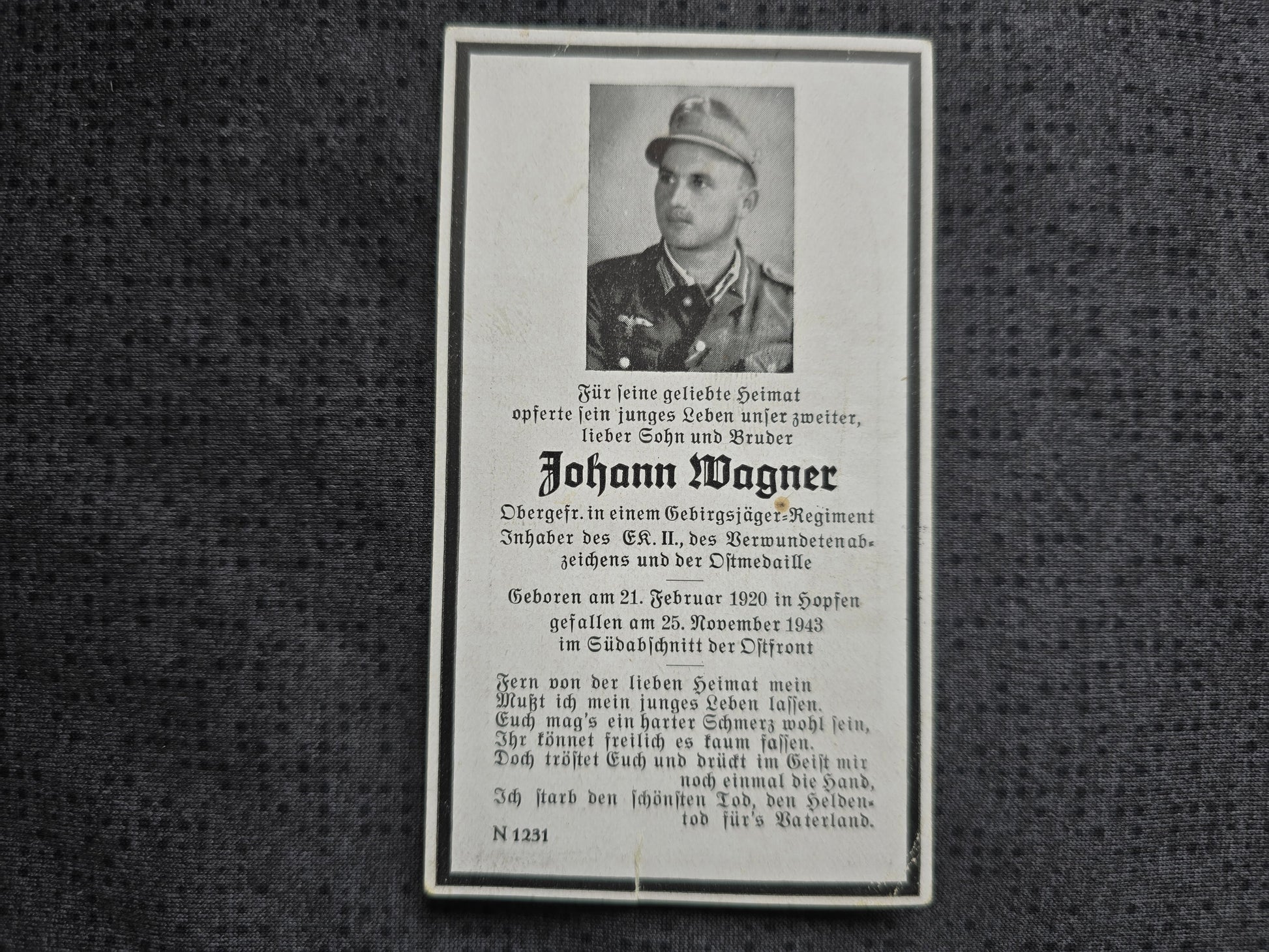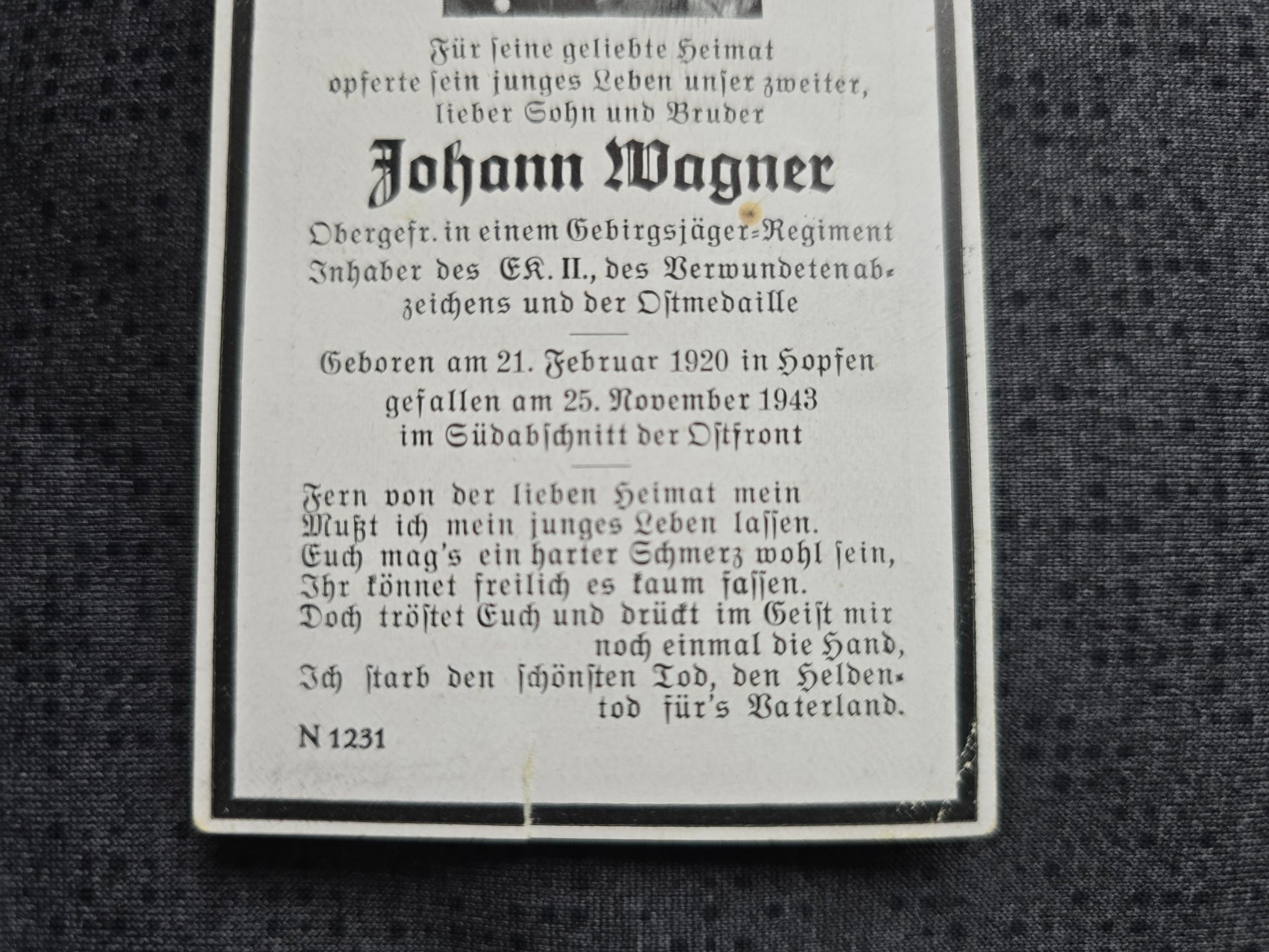 Sterbebild Obergefreiter Hopfen Gebirgsjäger Regt. EK II Südabschnitt Ostfront