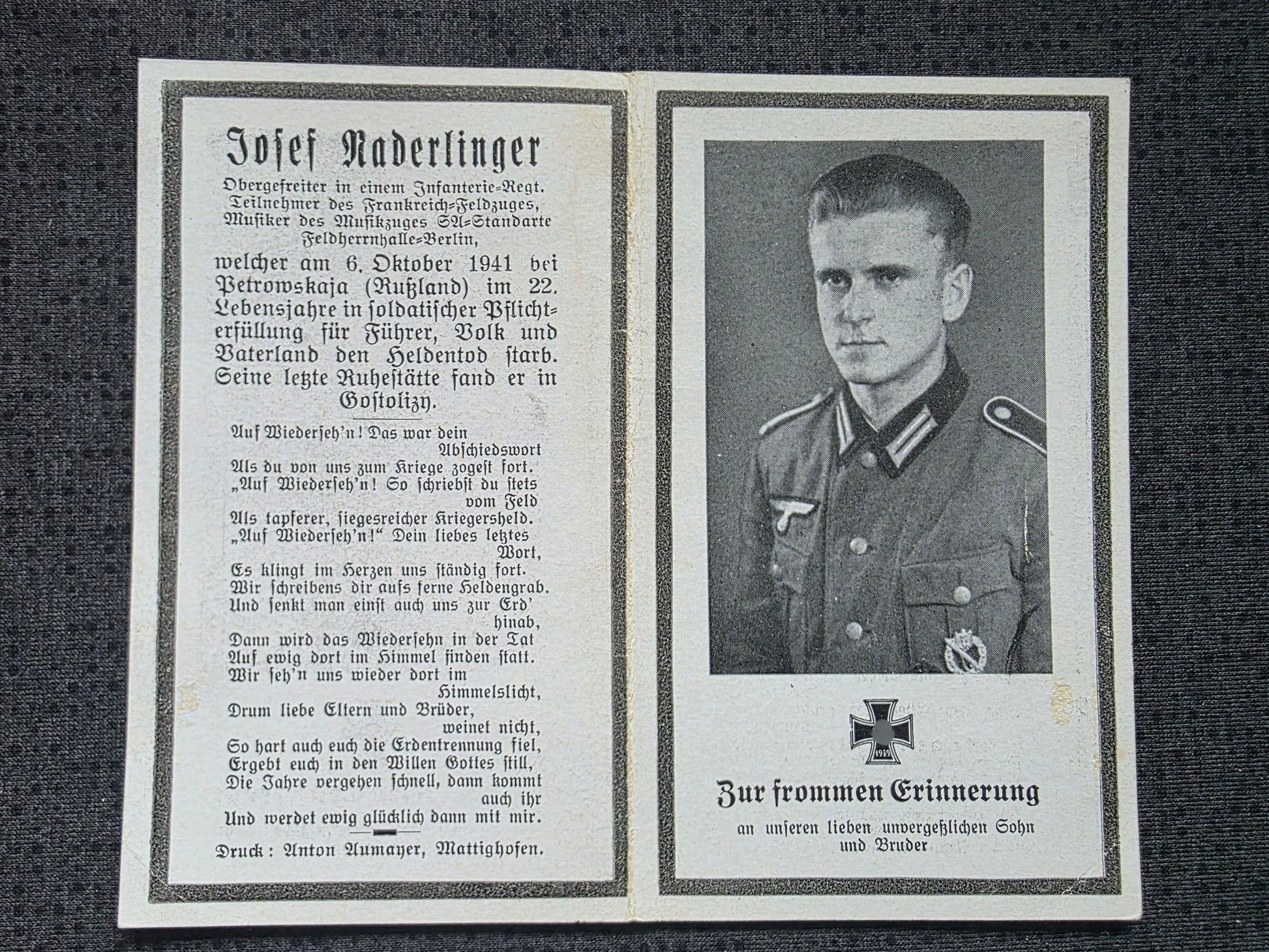 Sterbebild Obergefreiter Infanterie Regt. Musikkorps Feldherrnhalle Berlin FHH Petrowskaja Russland