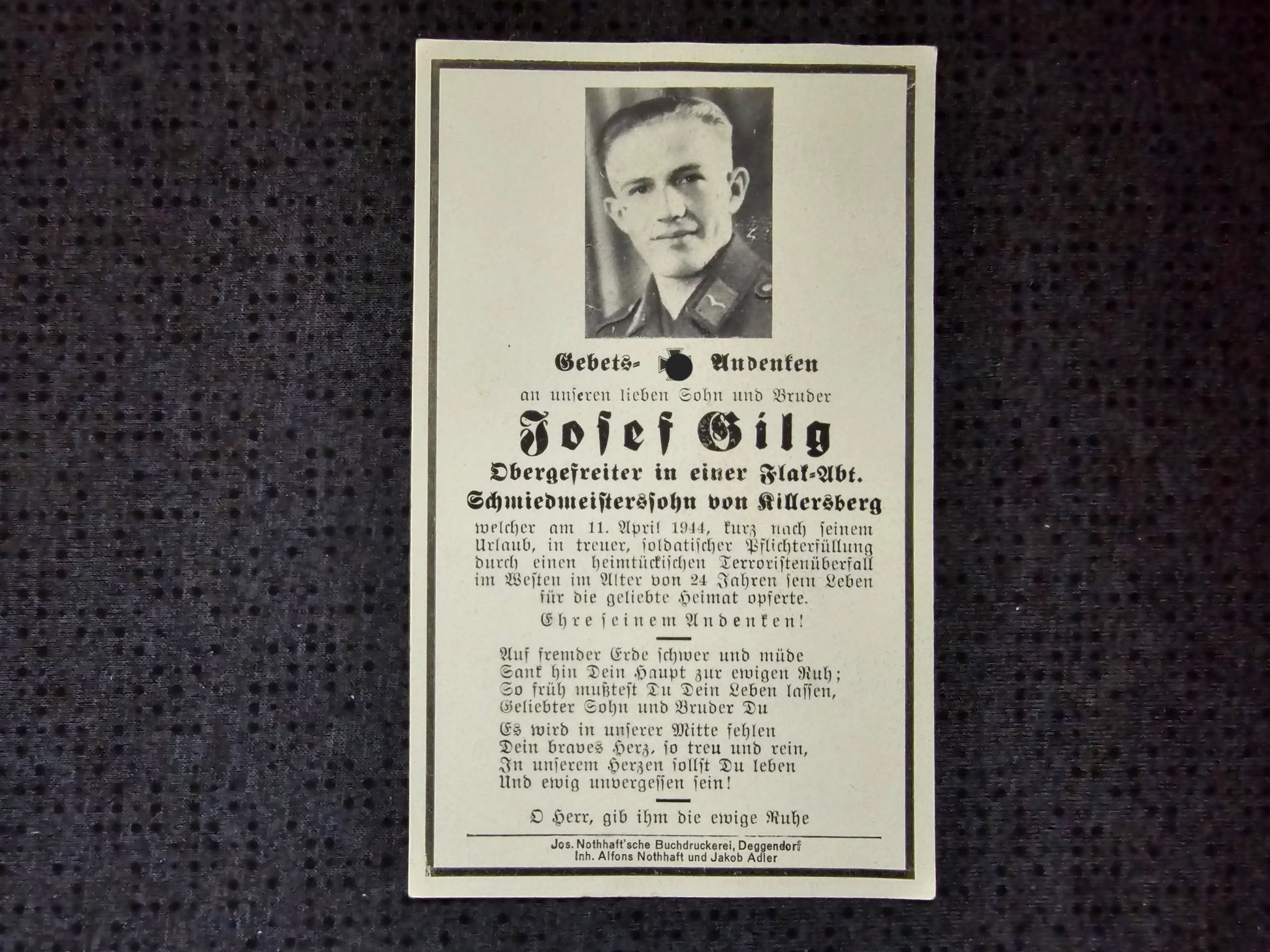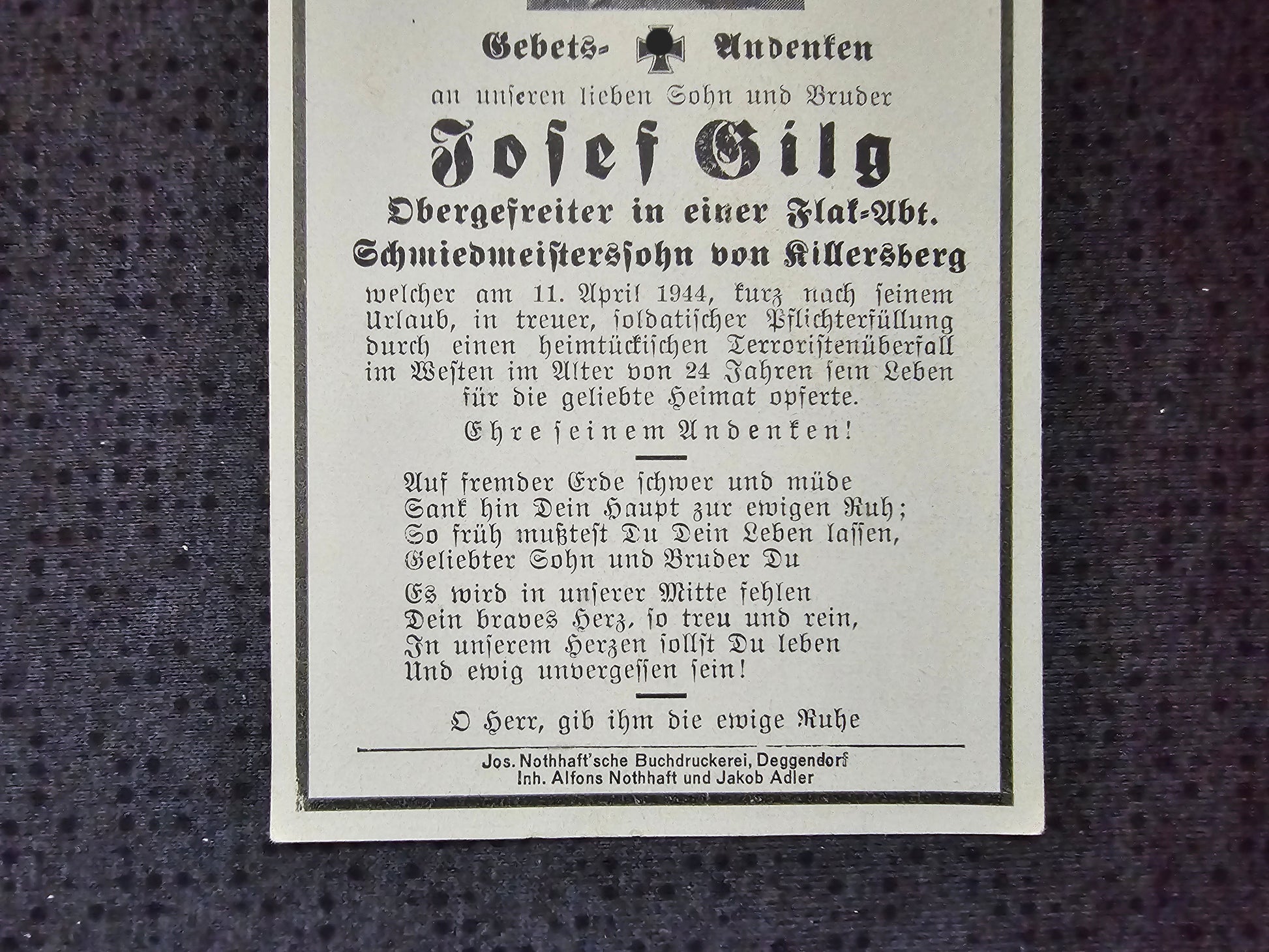 Sterbebild Obergefreiter Killesberg 3. Batterie Leichte Flak Abt. 752 Kerlouan Frankreich
