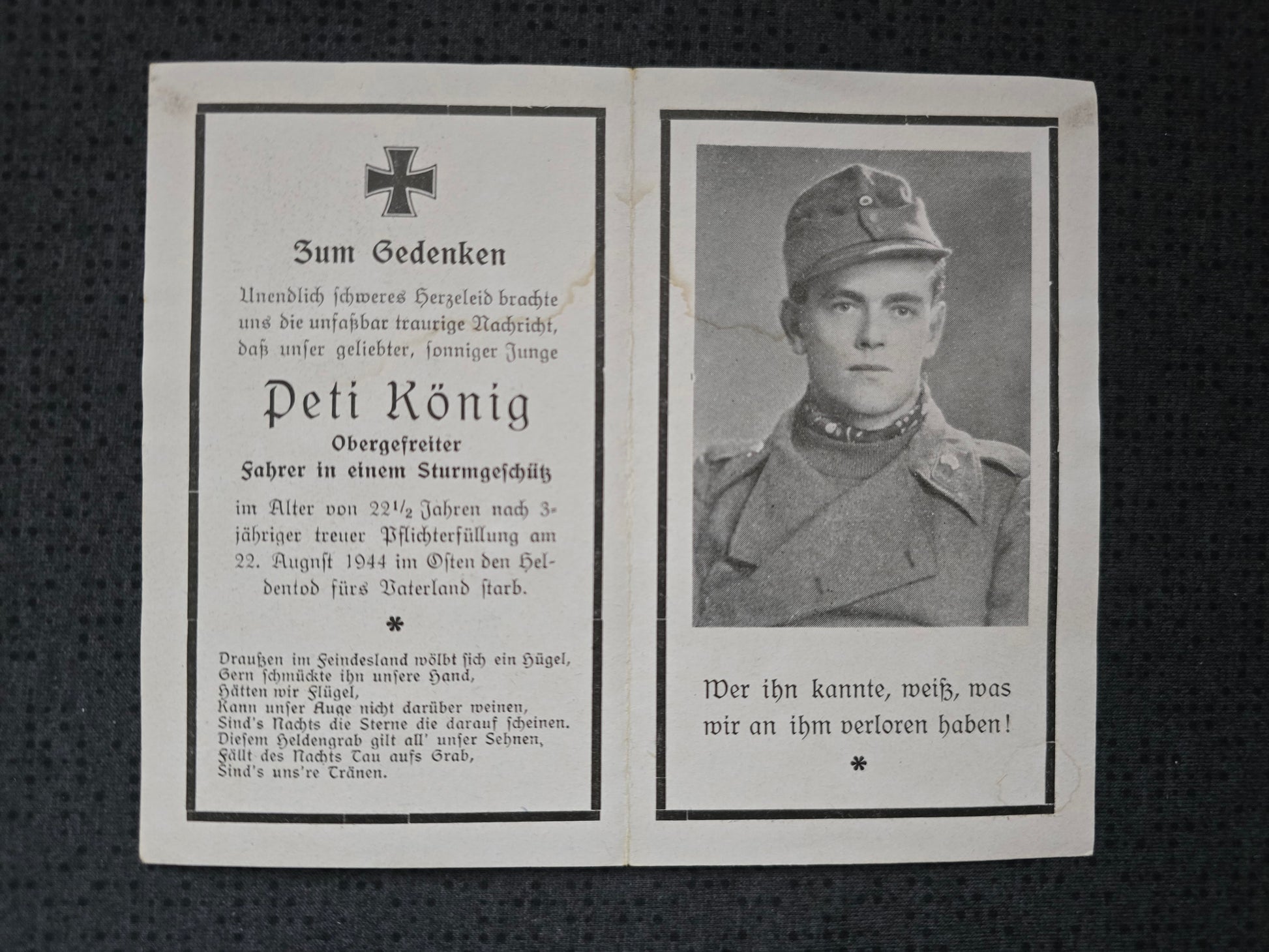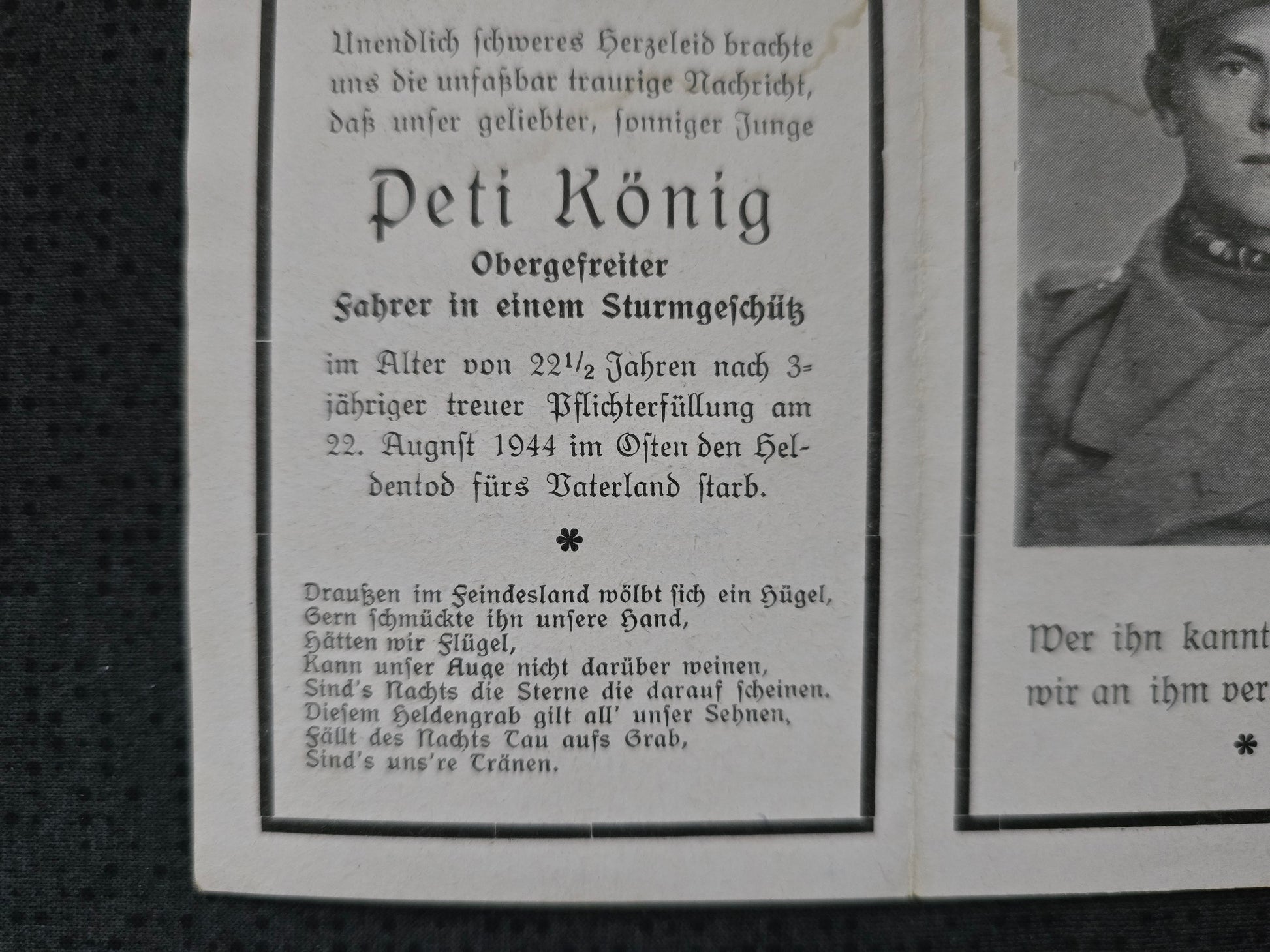Sterbebild Obergefreiter Leobendorf Sturmgeschützabteilung Ostrozne Zalesie Poczynki Polen
