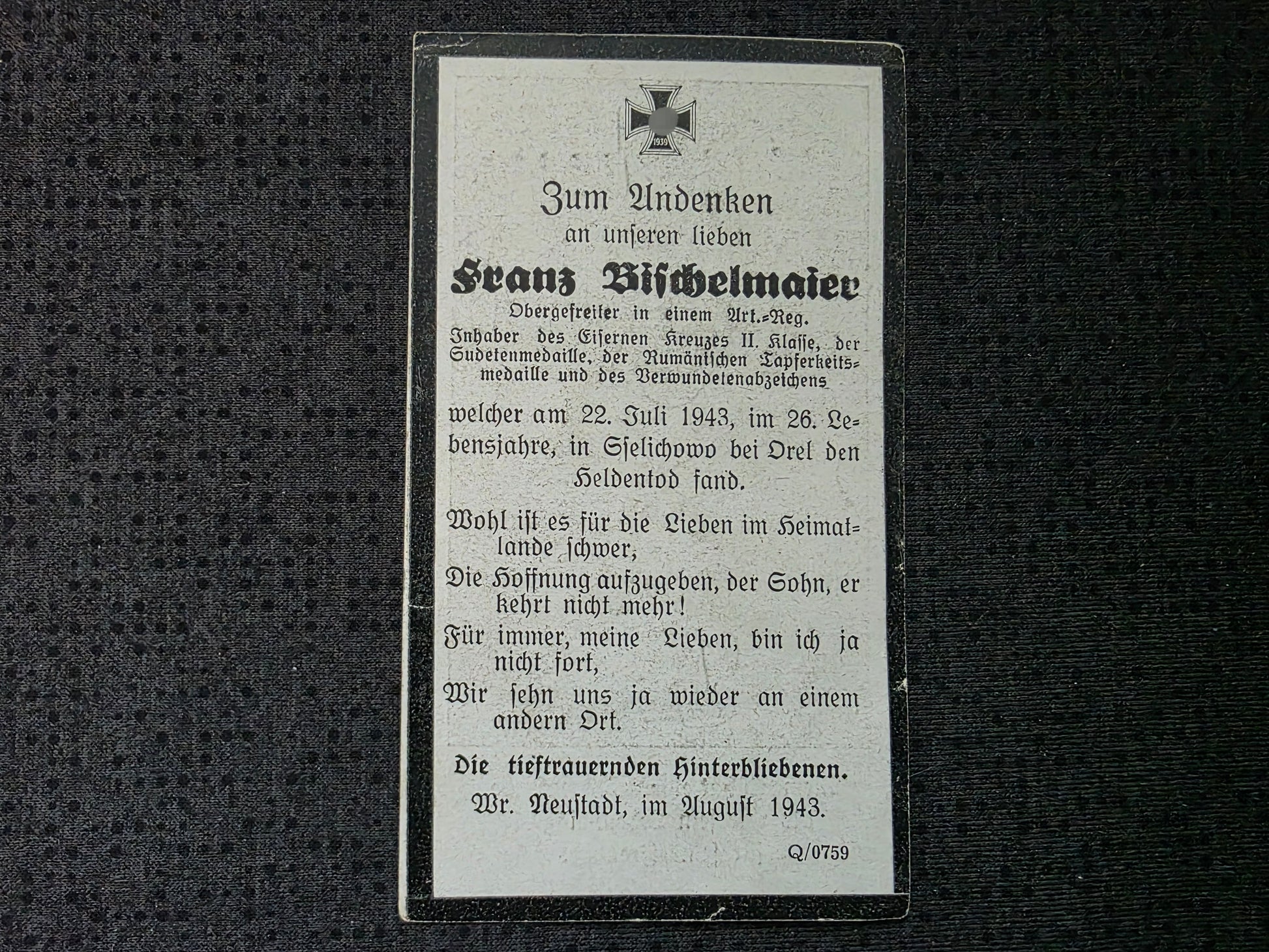 Sterbebild Obergefreiter Lichtenwörth 1. Panzer Art. Regt. 102 Rumänischer Orden Sudentmed. Sselichowo Russland