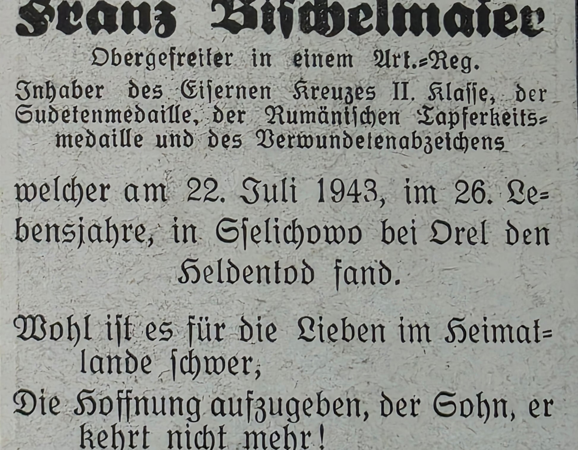 Gefallen am 22.07.1943 in Sselichowo (Russland)