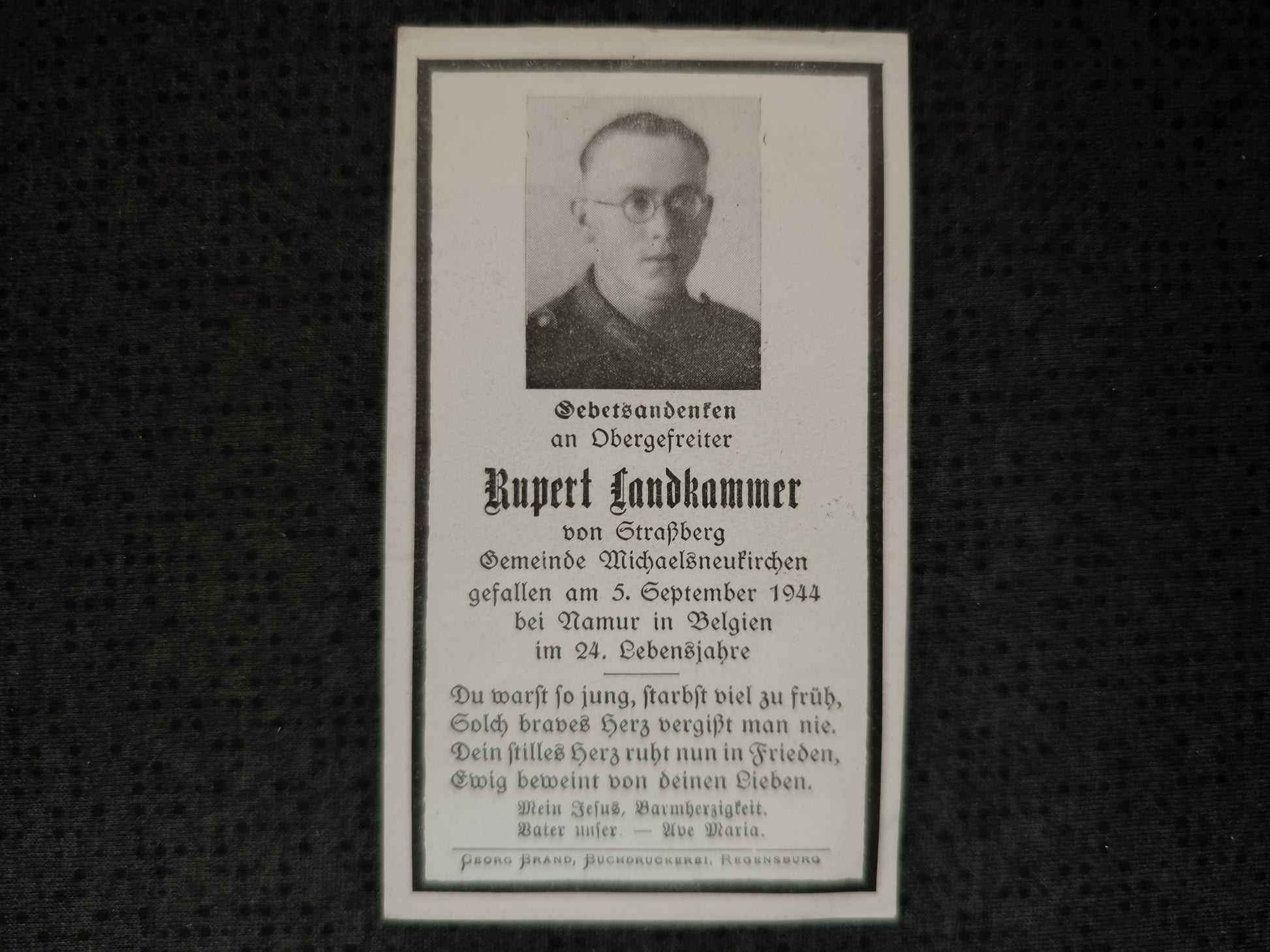 Sterbebild Obergefreiter Michaelsneukirchen Namur Lommel Belgien