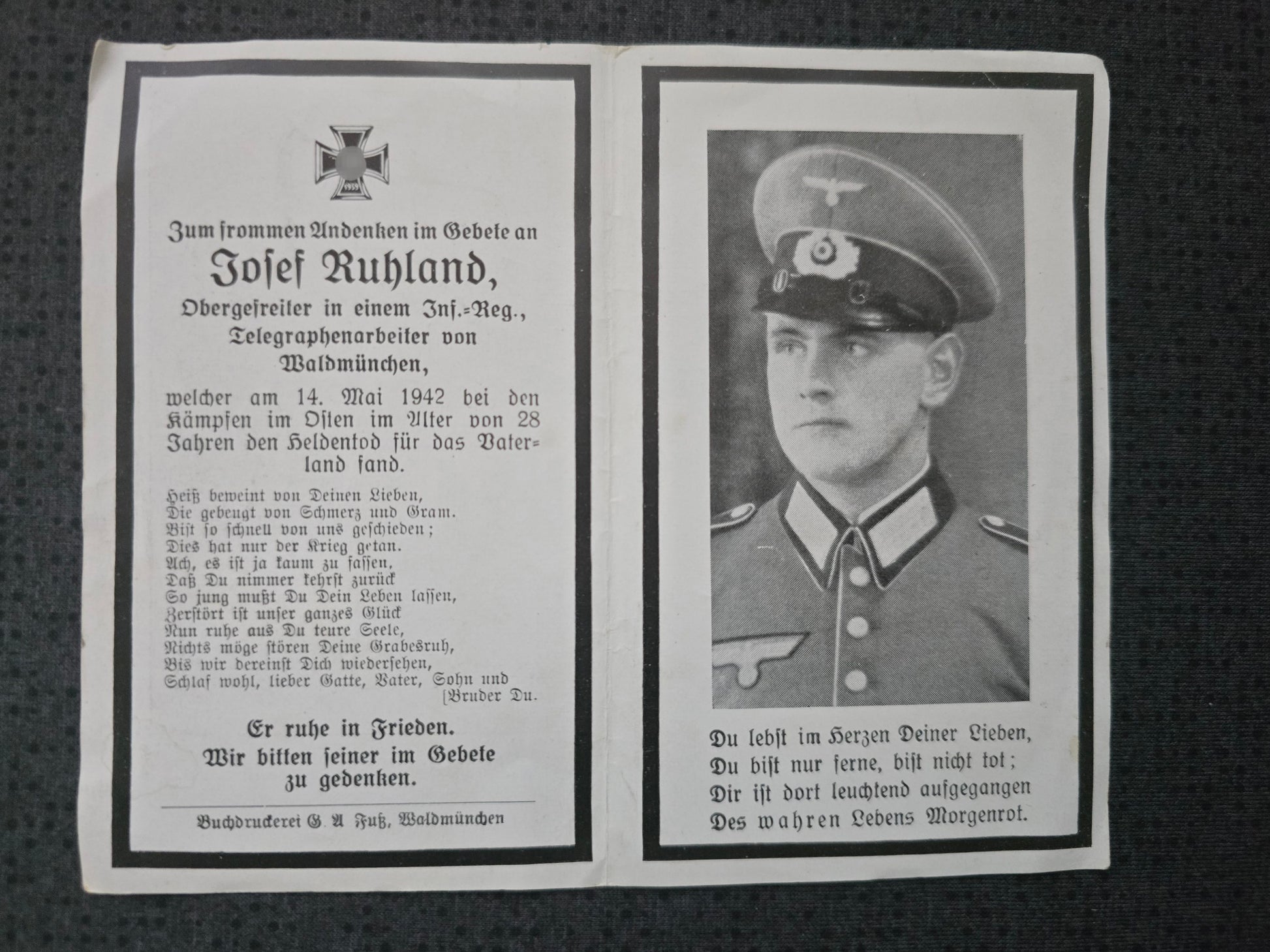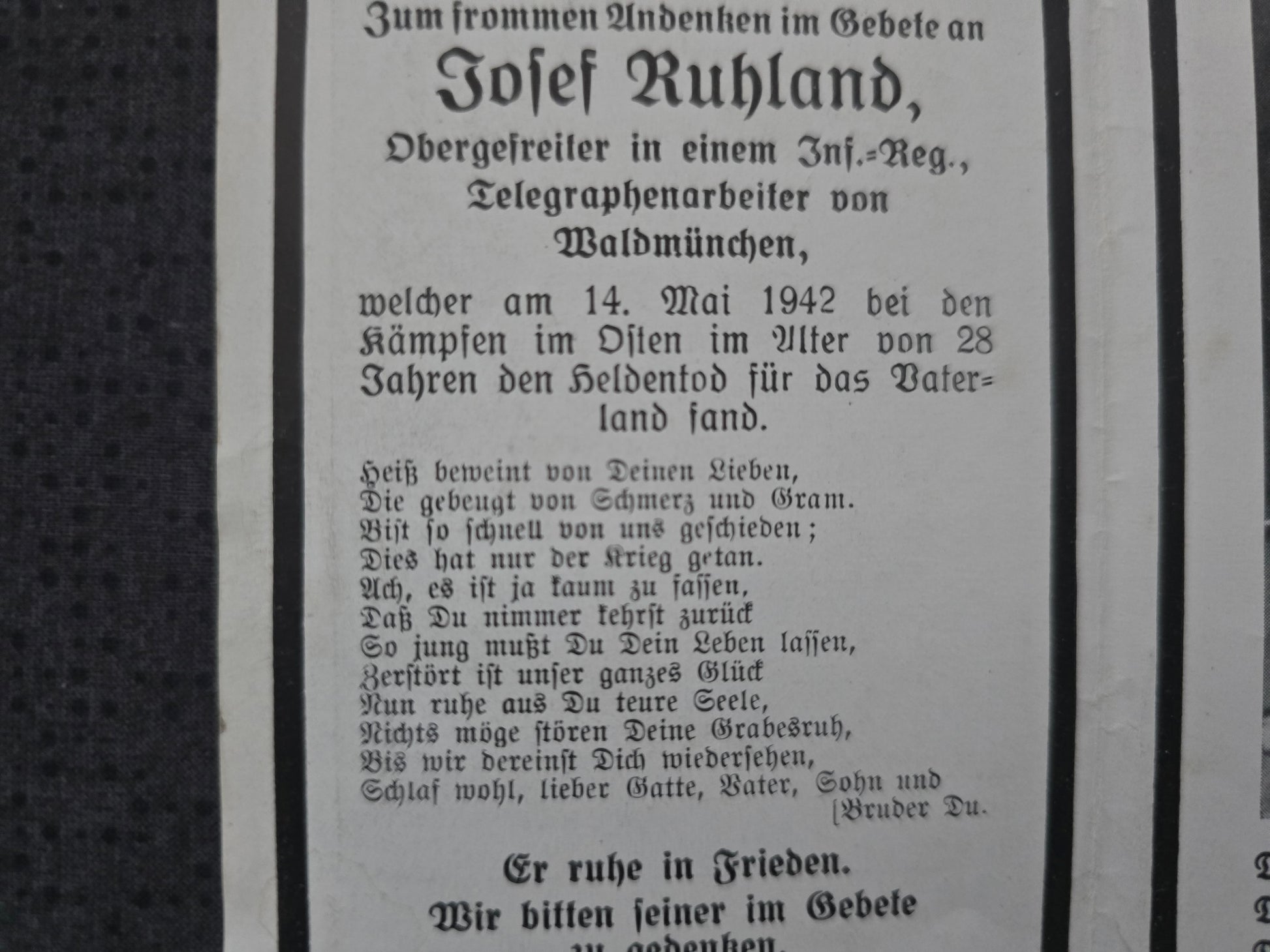 Sterbebild Obergefreiter München 6. Komp. Inf. Regt. 391 Kertsch Ukraine