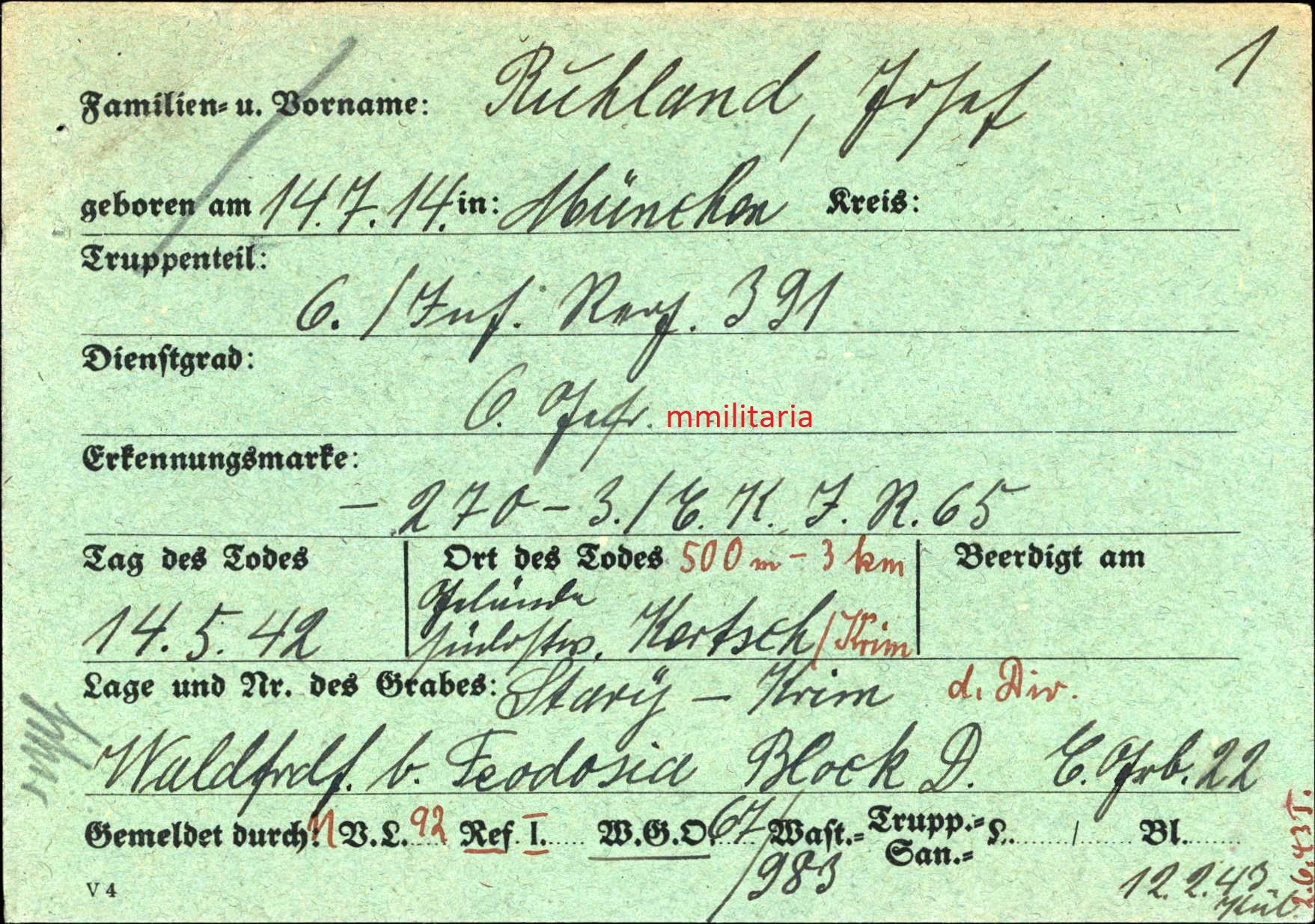 Gefallen am 14.05.1942 bei Kertsch (Ukraine)