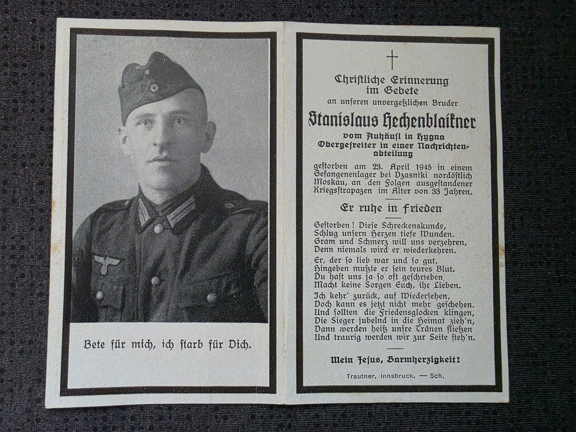 Sterbebild Obergefreiter Nachrichtenabteilung Endkampf KGL Moskau Russland