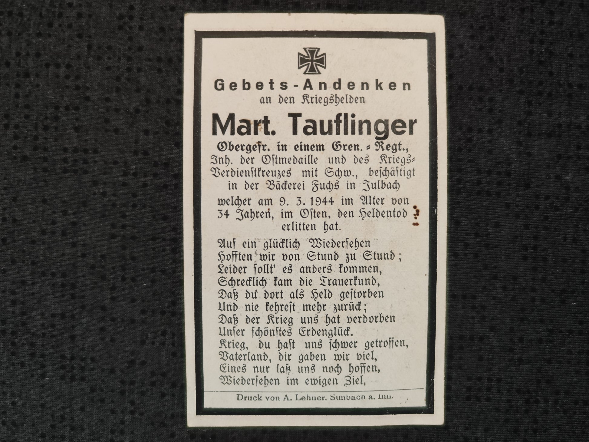 Sterbebild Obergefreiter Kirchdorf Nachrichtenzug Gren. Regt. 436 Stanislawowo Weissrussland