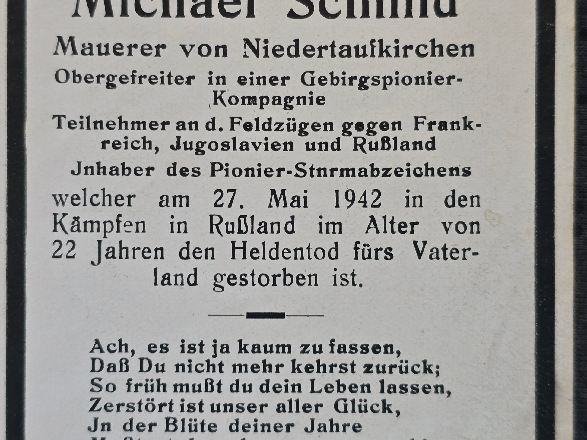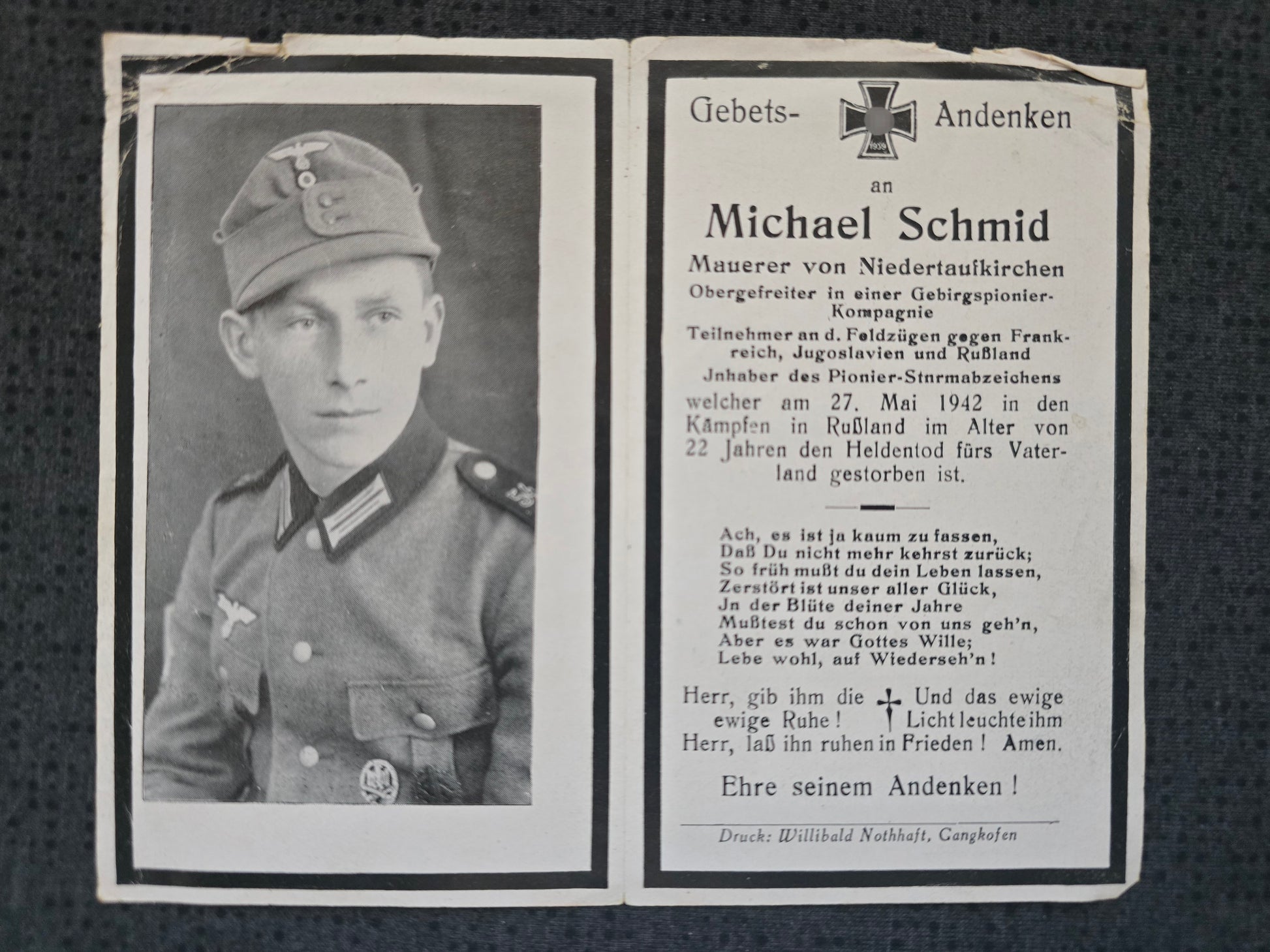 Sterbebild Obergefreiter Niedertaufkirchen 8. Gebirgs-Pionier Btl. 54 Pioniersturmabz. Wolwenkowo Ukraine