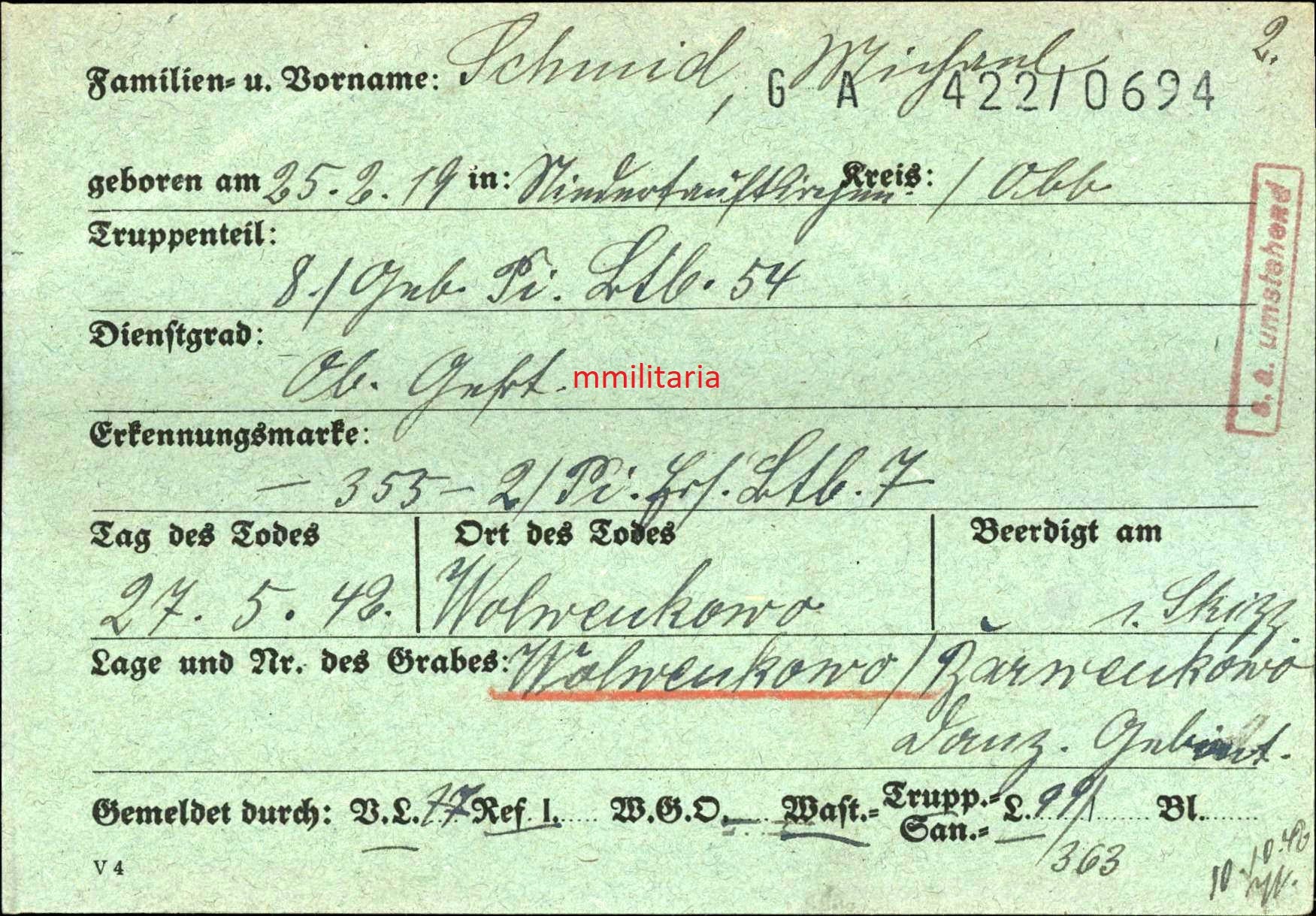Gefallen am 27.05.1942 in Wolwenkowo (Ukraine)