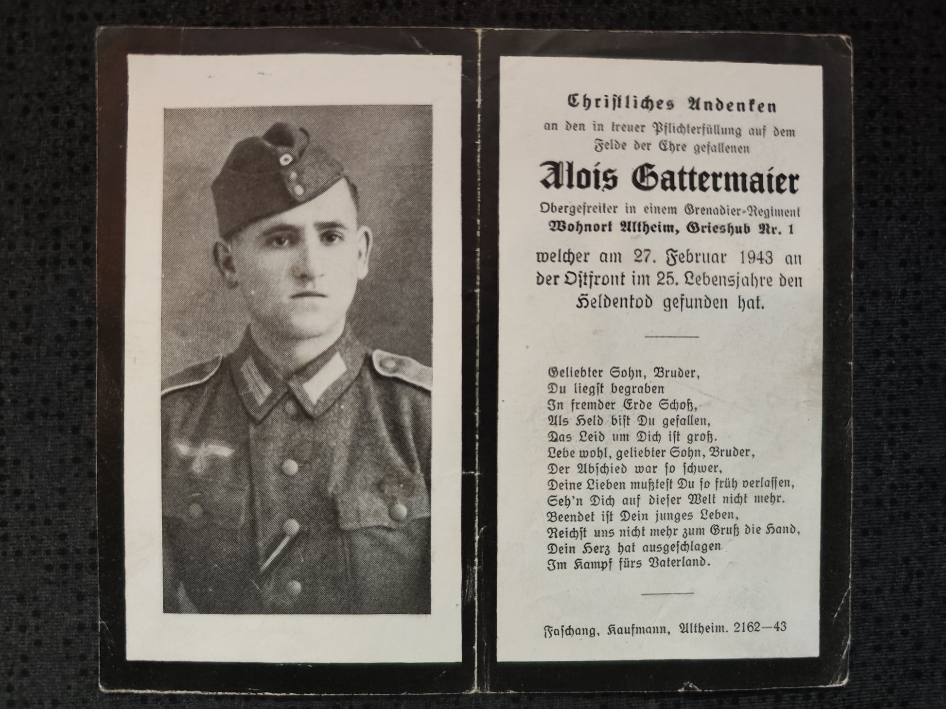 Gefallen am 27.02.1943 bei Ligoff (Russland)