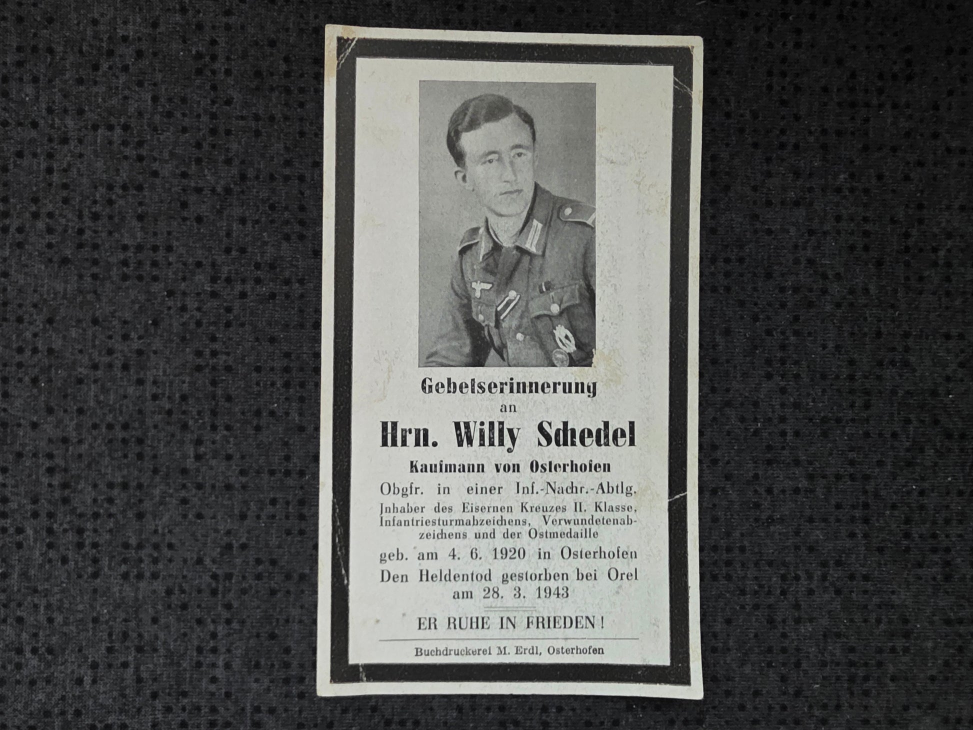 Sterbebild Obergefreiter Osterhofen Inf.-Nachrichten Abt. Orel Russland