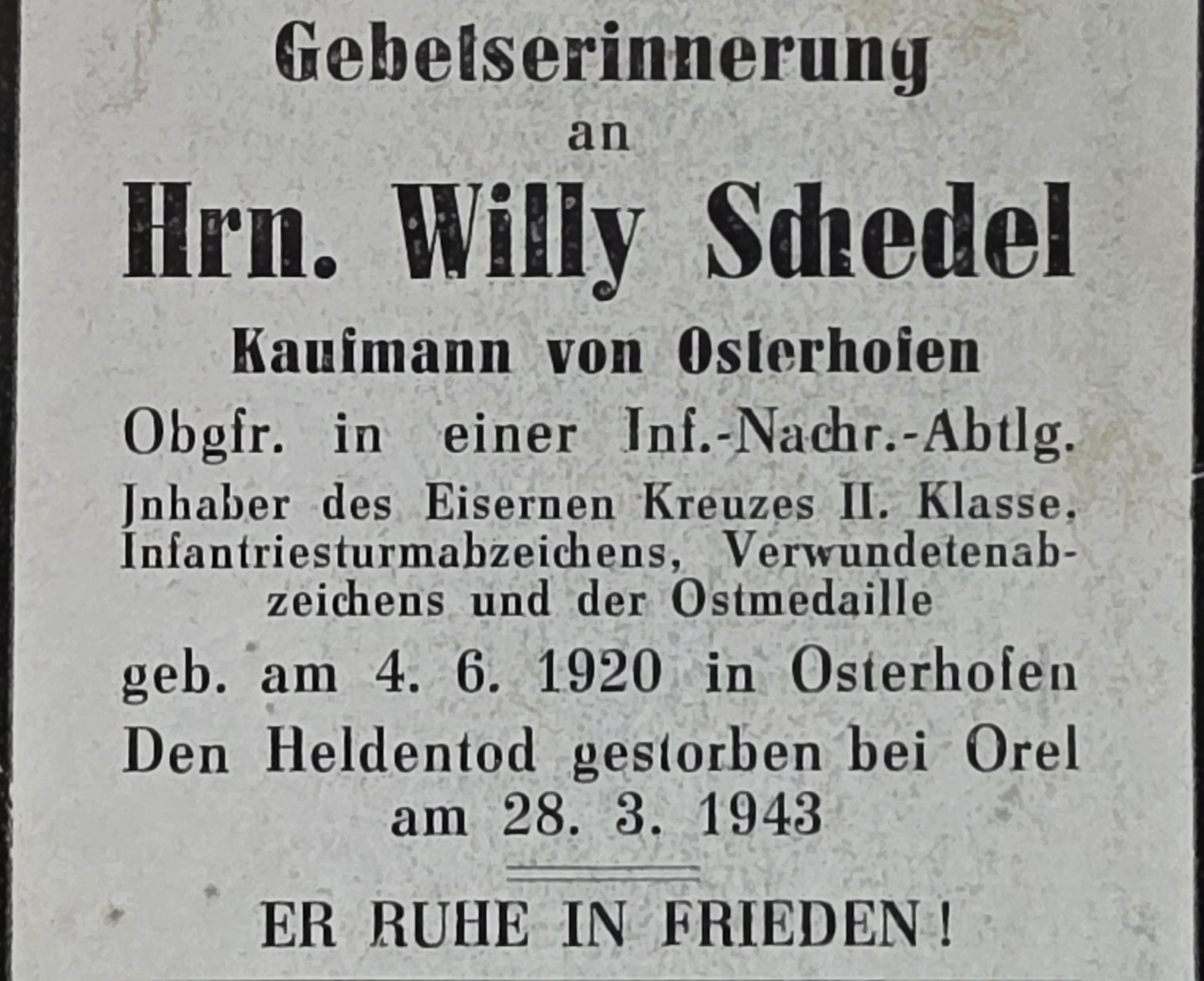 Gefallen am 28.03.1943 bei Orel (Russland)
