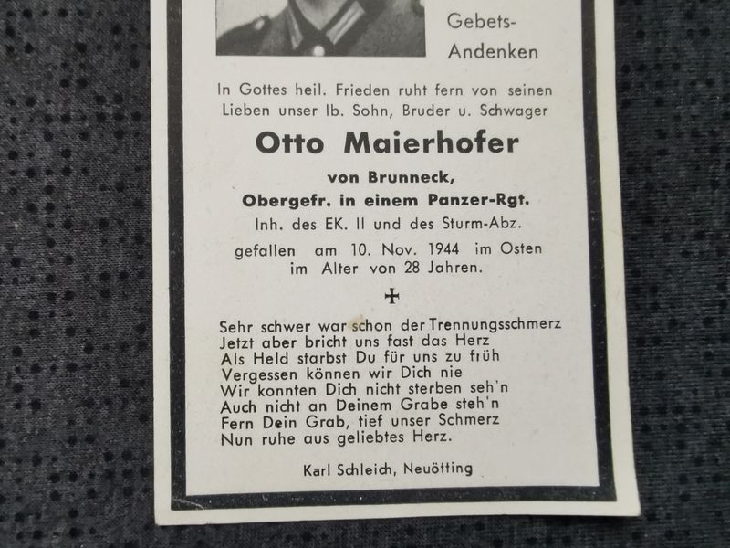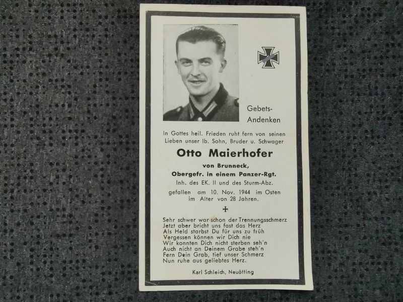 Sterbebild Obergefreiter Brunneck Panzer Regt. EK II Sturmabz. Metraine Kurland Lettland